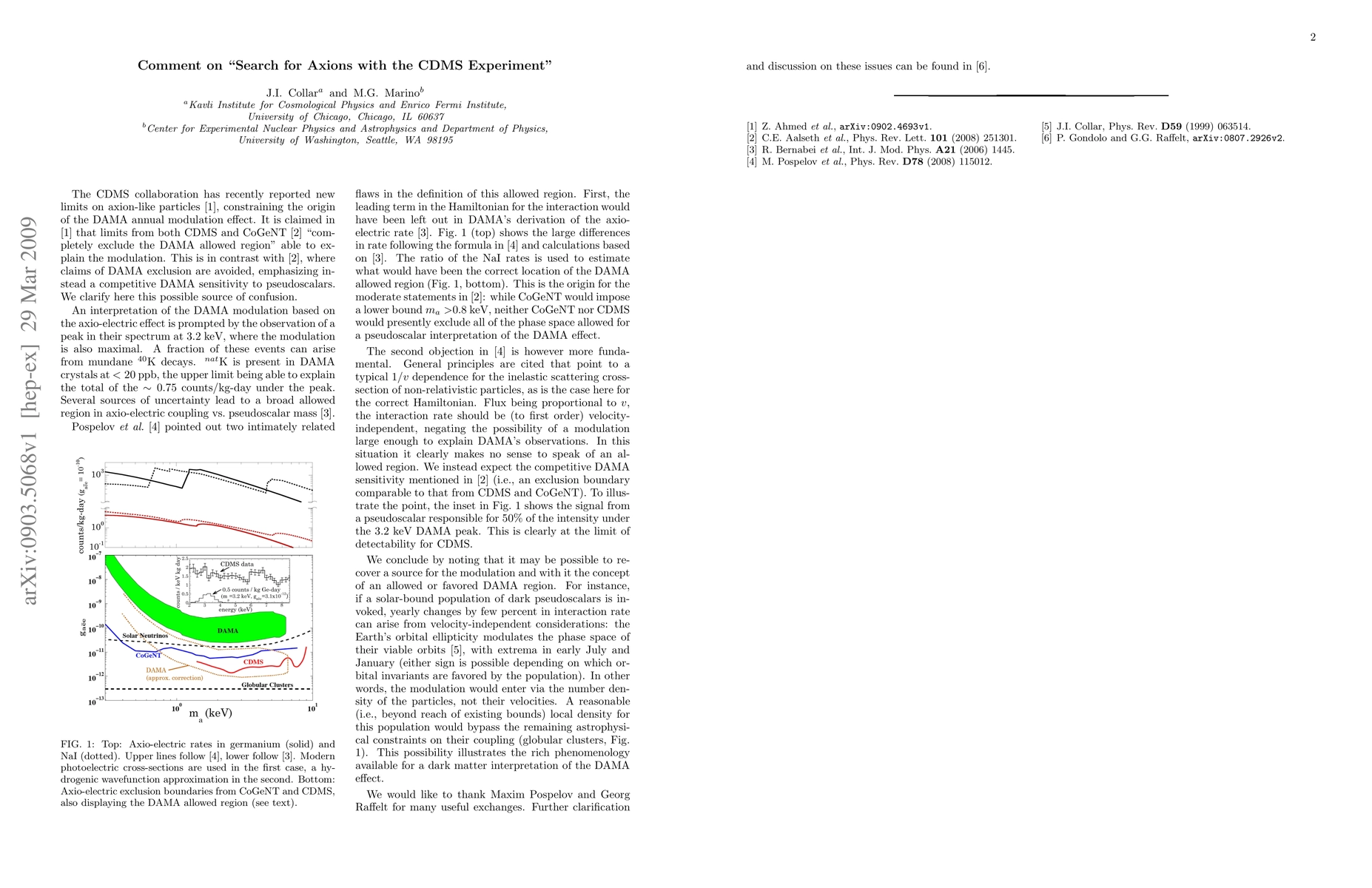 We offer a few remarks that should help clarify the relative sensitivity of CoGeNT, CDMS and DAMA to dark pseudoscalars. An alternative dark matter origin for the DAMA modulation is briefly mentioned within this context.