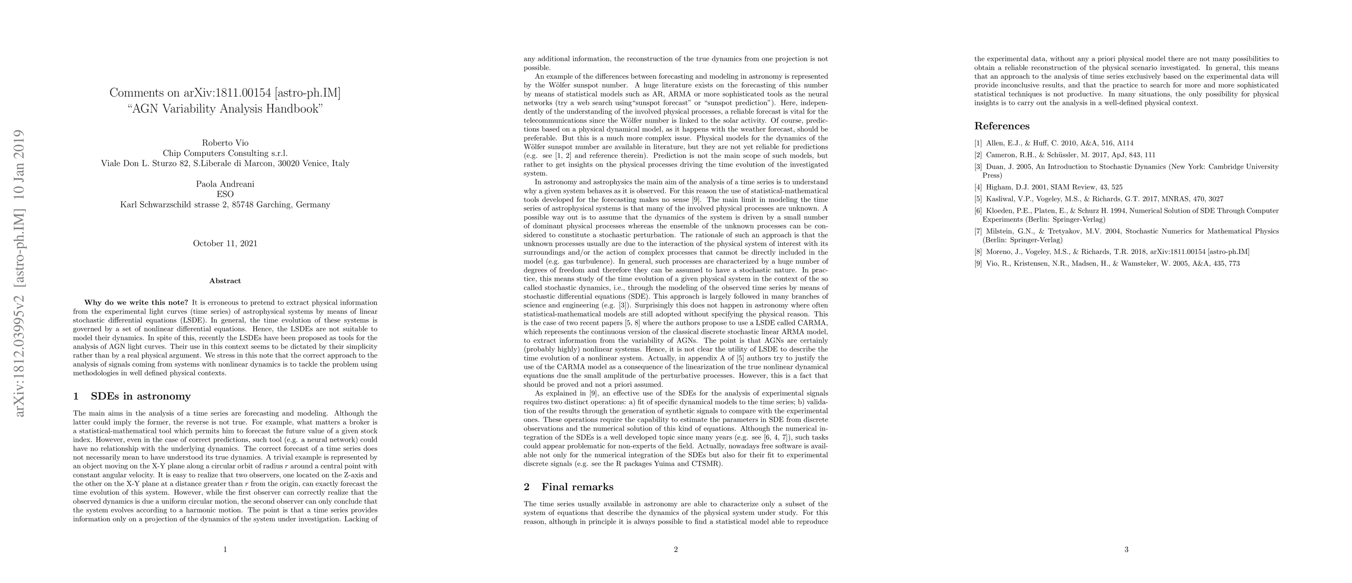 This note critiques the use of linear stochastic differential equations (LSDE) for analyzing Active Galactic Nuclei (AGN) light curves, arguing that these systems are governed by nonlinear dynamics. It emphasizes the need for methodologies grounded in a well-defined physical context for accurate signal analysis.