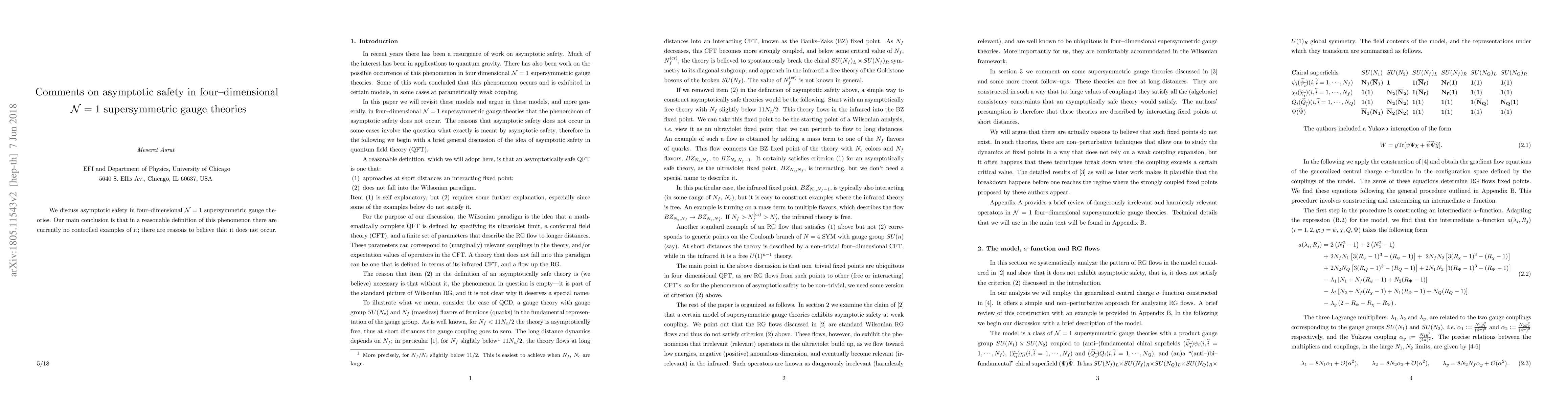 Summary: This paper explores asymptotic safety in four-dimensional $\mathcal{N} = 1$ supersymmetric gauge theories but concludes that there are currently no controlled examples of this phenomenon, suggesting it may not occur.