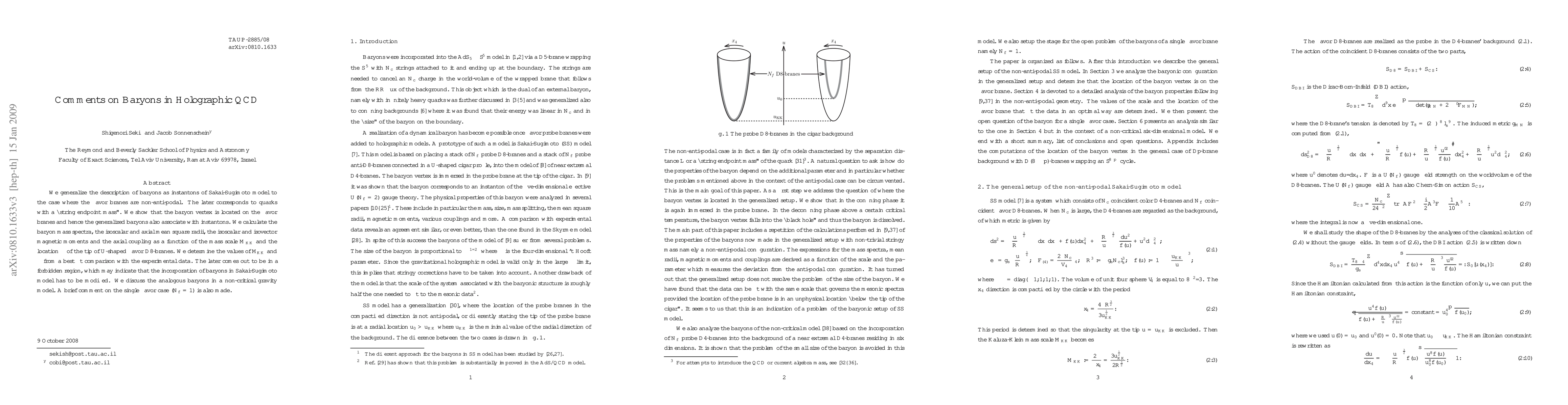 We generalize the description of baryons as instantons of Sakai-Sugimoto model to the case where the flavor branes are non-anti-podal. The later corresponds to quarks with a "string endpoint mass". We show that the baryon vertex is located on the flavor branes and hence the generalized baryons also associate with instantons. We calculate the baryon mass spectra, the isoscalar and axial mean square radii, the isoscalar and isovector magnetic moments and the axial coupling as a function of the mass scale M_{KK} and the location \zeta of the tip of U-shaped flavor D8-branes. We determine the values of M_{KK} and \zeta from a best fit comparison with the experimental data. The later comes out to be in a forbidden region, which may indicate that the incorporation of baryons in Sakai-Sugimoto model has to be modified. We discuss the analogous baryons in a non-critical gravity model. A brief comment on the single flavor case (N_f=1) is also made.