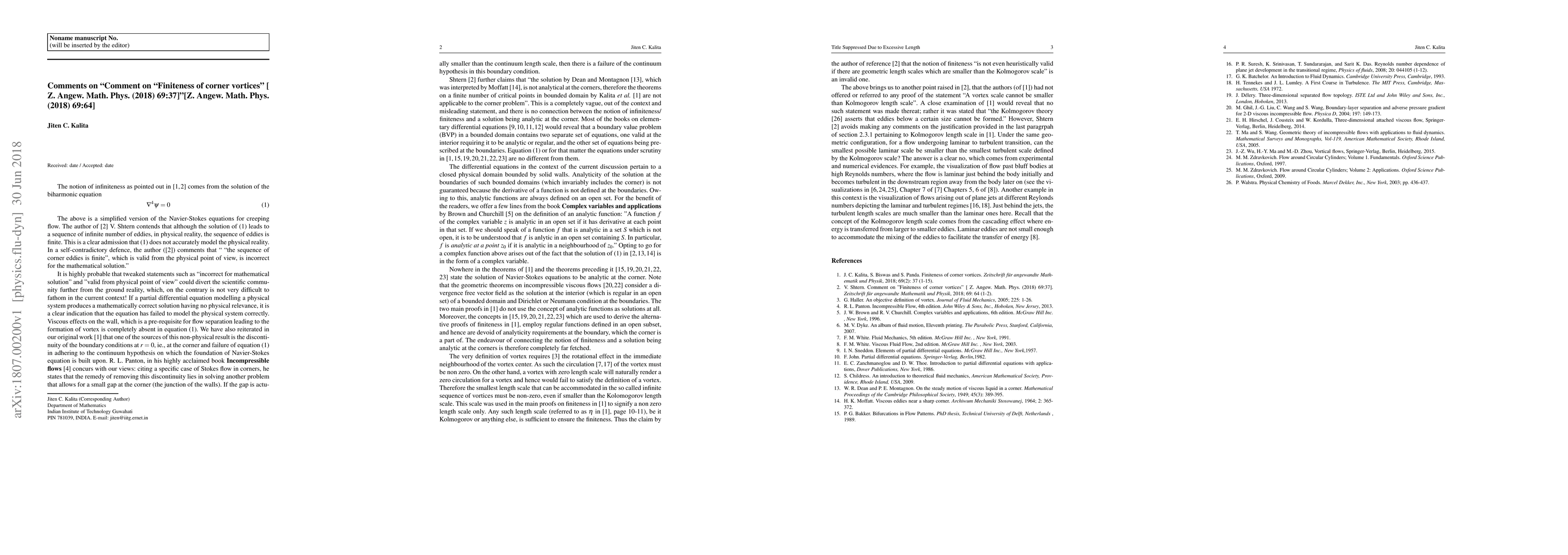 A research note clarifies comments made on a previous paper about corner vortices, focusing on key findings related to the finiteness of these structures.