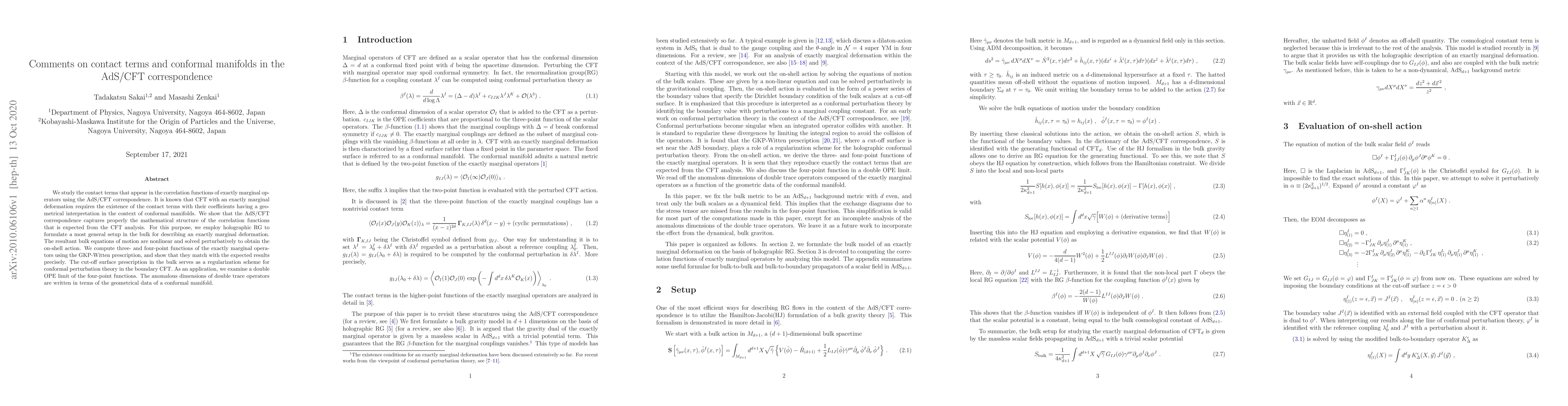 This paper investigates contact terms in correlation functions of exactly marginal operators within the AdS/CFT correspondence, demonstrating that the AdS/CFT framework accurately captures the expected mathematical structure from conformal field theory analysis. It employs holographic renormalization group methods and GKP-Witten prescription to compute correlation functions, showing precise agreement with theoretical predictions.