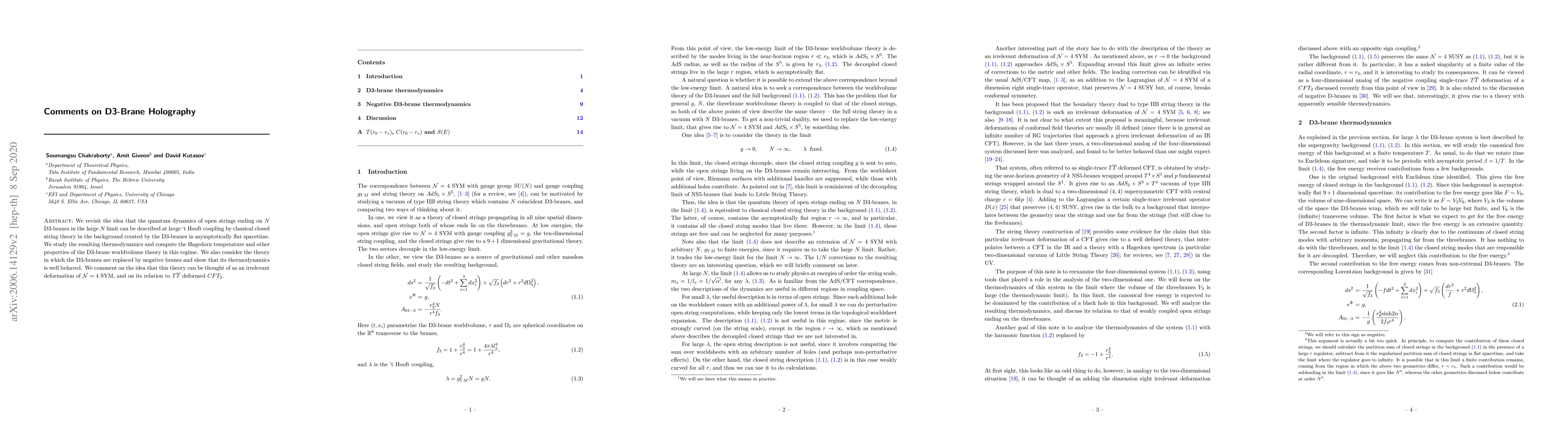 This paper explores the quantum dynamics of open strings on D3-branes in the large $N$ limit, proposing that it can be described by classical closed string theory in the created background. It examines the thermodynamics, including the Hagedorn temperature, and discusses the implications of replacing D3-branes with negative branes, noting the theory's stability and its relation to $\mathcal{N}=4$ SYM and $T\bar T$ deformed $CFT_2$.