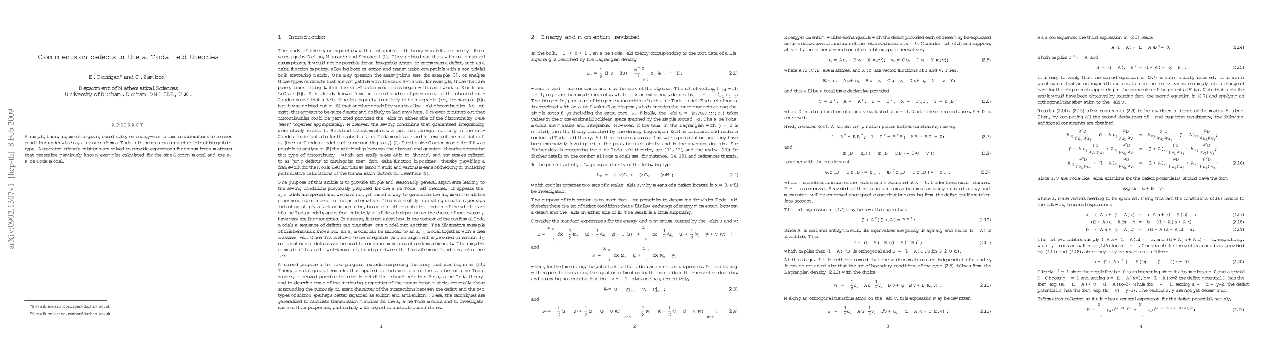 A simple, basic, argument is given, based solely on energy-momentum considerations to recover conditions under which a_r affine or conformal Toda field theories can support defects of integrable type. Associated triangle relations are solved to provide expressions for transmission matrices that generalize previously known examples calculated for the sine-Gordon model and the a_2 affine Toda model.