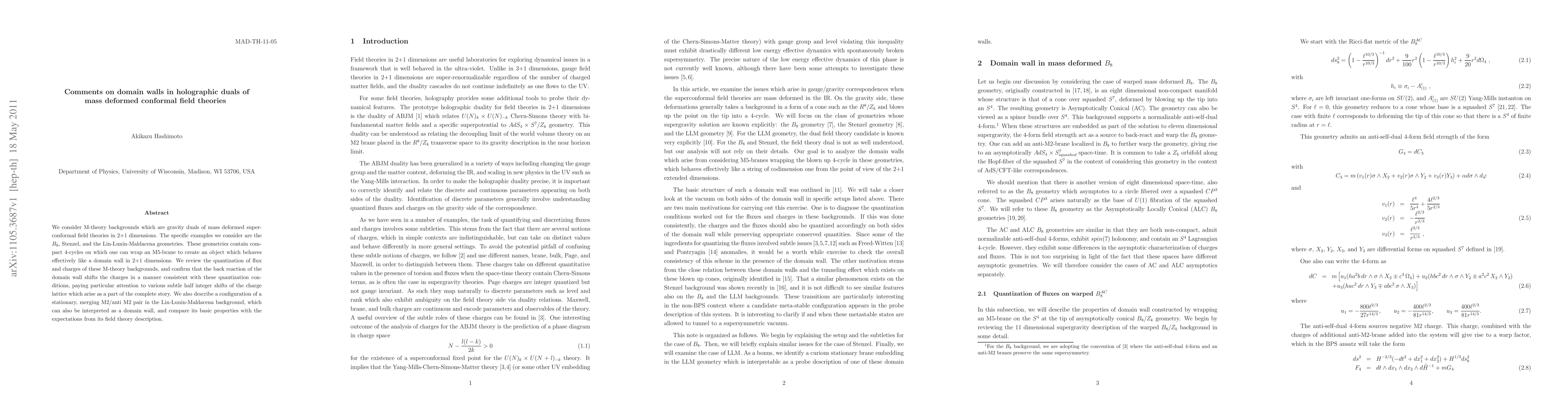 We consider M-theory backgrounds which are gravity duals of mass deformed superconformal field theories in 2+1 dimensions. The specific examples we consider are the B_8, Stenzel, and the Lin-Lunin-Maldacena geometries. These geometries contain compact 4-cycles on which one can wrap an M5-brane to create an object which behaves effectively like a domain wall in 2+1 dimensions. We review the quantization of flux and charges of these M-theory backgrounds, and confirm that the back reaction of the domain wall shifts the charges in a manner consistent with these quantization conditions, paying particular attention to various subtle half integer shifts of the charge lattice which arise as a part of the complete story. We also describe a configuration of a stationary, merging M2/anti M2 pair in the Lin-Lunin-Maldacena background, which can also be interpreted as a domain wall, and compare its basic properties with the expectations from its field theory description.