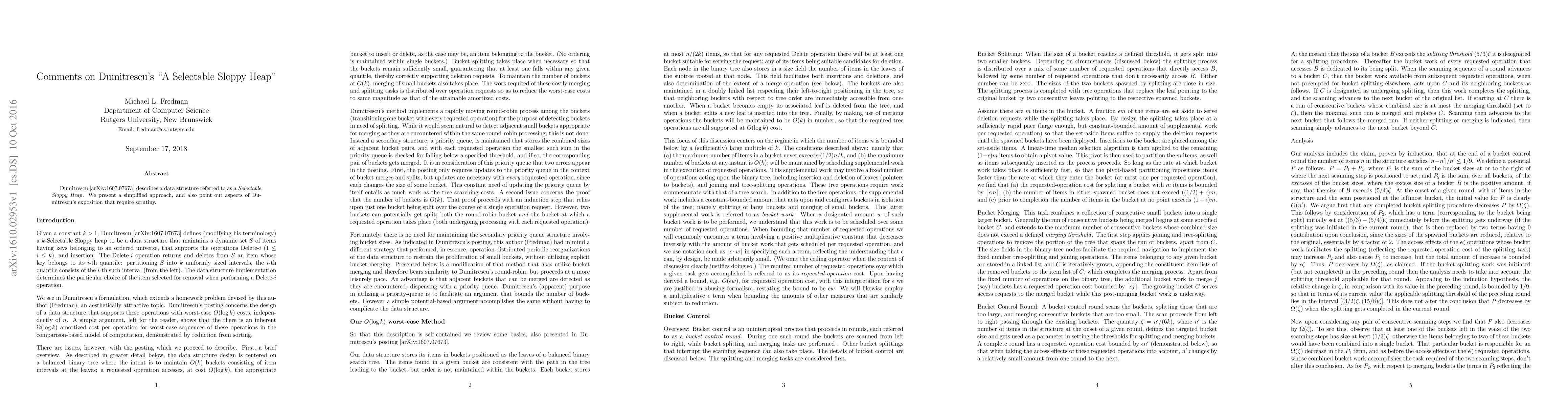 Dumitrescu [arXiv:1607.07673] describes a data structure referred to as a Selectable Sloppy Heap. We present a simplified approach, and also point out aspects of Dumitrescu's exposition that require scrutiny.
