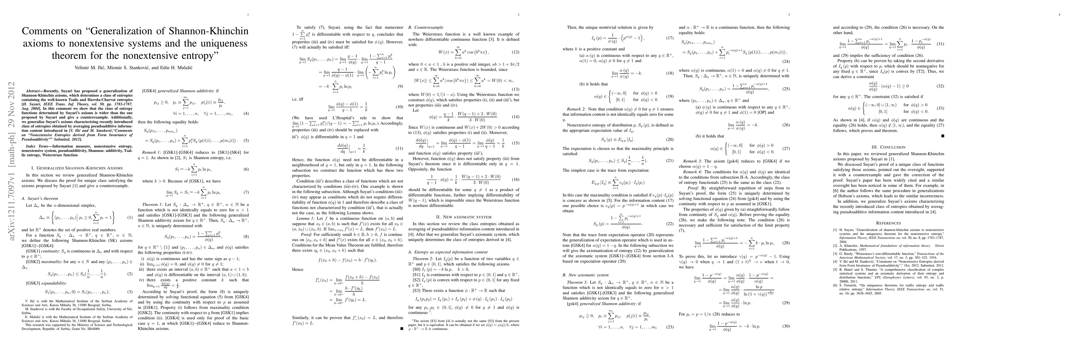 This paper critiques Suyari's generalization of Shannon-Khinchin axioms for nonextensive systems, demonstrating that the resulting class of entropy functions is broader than initially proposed. It also provides a counterexample and extends the axioms to include entropies derived from pseudoadditivity.
