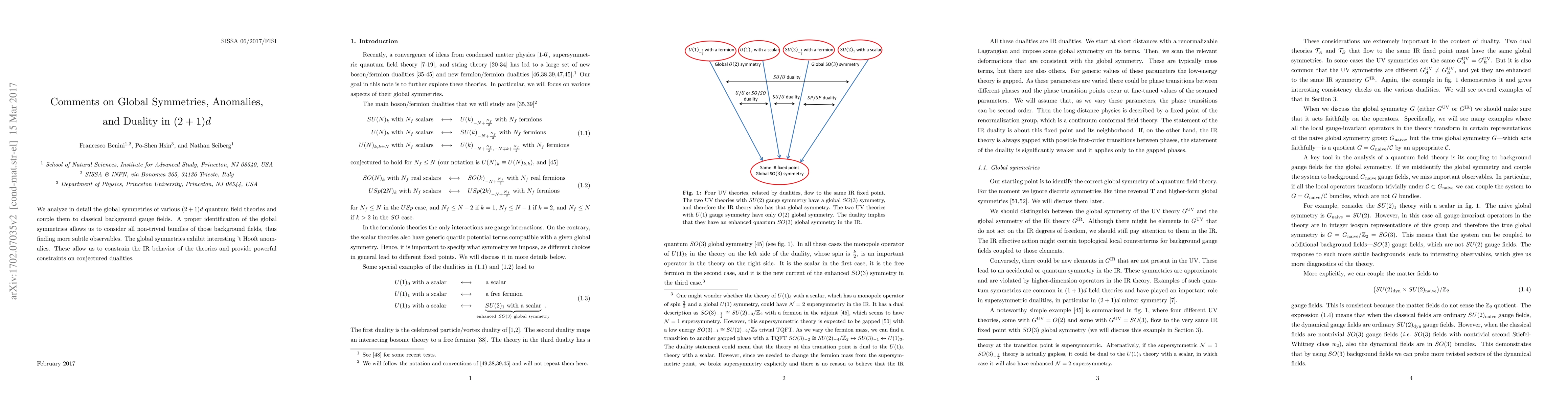 This paper investigates the global symmetries and anomalies in (2+1)d quantum field theories, coupling them to classical gauge fields, and uses these insights to uncover subtle observables and constrain infrared behavior, providing strong evidence for dualities.