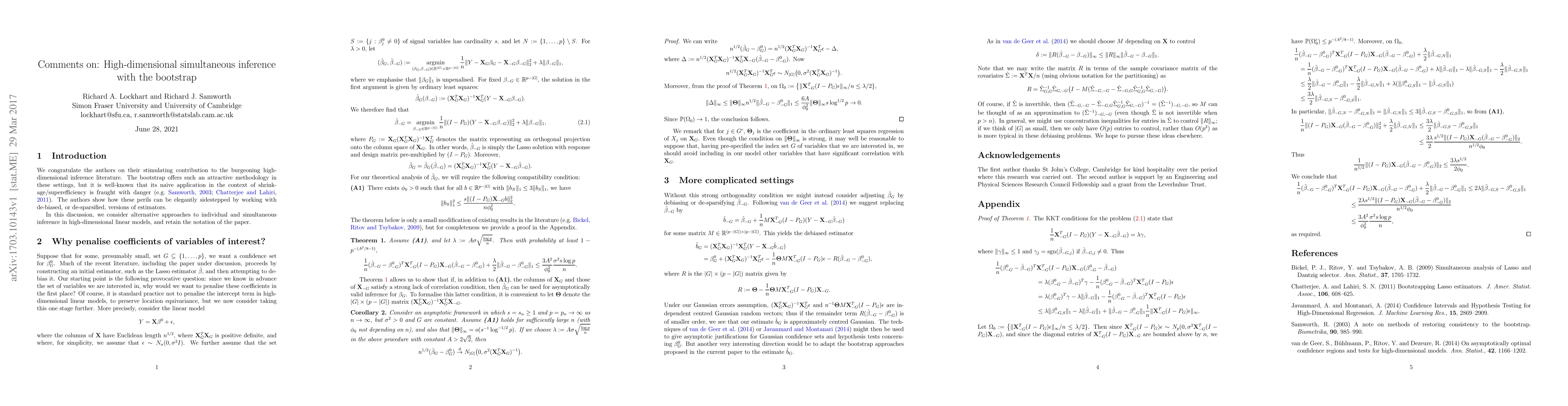 We provide some comments on the article `High-dimensional simultaneous inference with the bootstrap' by Ruben Dezeure, Peter Buhlmann and Cun-Hui Zhang.