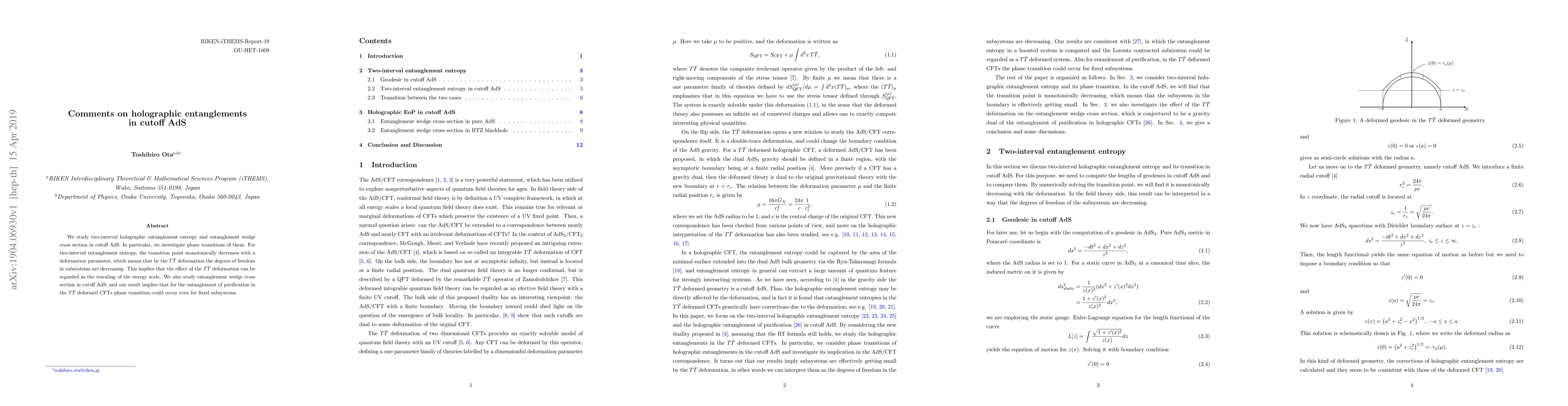 This paper investigates phase transitions in holographic entanglement entropy and entanglement wedge cross section in cutoff AdS, finding that TT deformation decreases subsystem degrees of freedom, effectively rescaling the energy scale. It also suggests that entanglement purification in TT deformed CFTs may undergo phase transitions even with fixed subsystems.