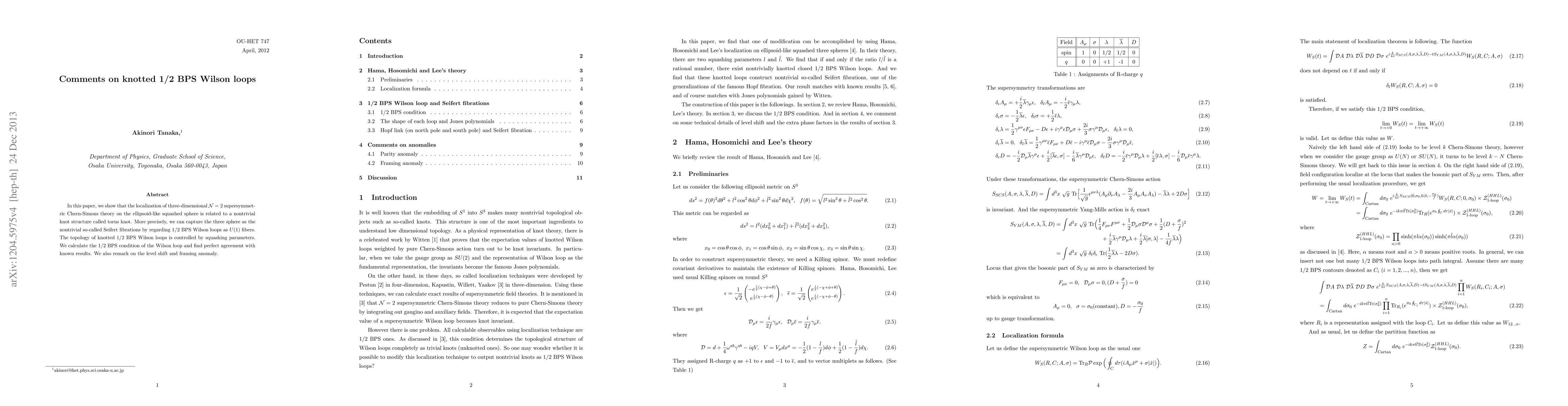 This paper demonstrates the connection between the localization of three-dimensional N = 2 supersymmetric Chern-Simons theory on a squashed sphere and knotted torus knots. It finds that knotted 1/2 BPS Wilson loops correspond to nontrivial Seifert fibrations and confirms the 1/2 BPS condition for Wilson loops.