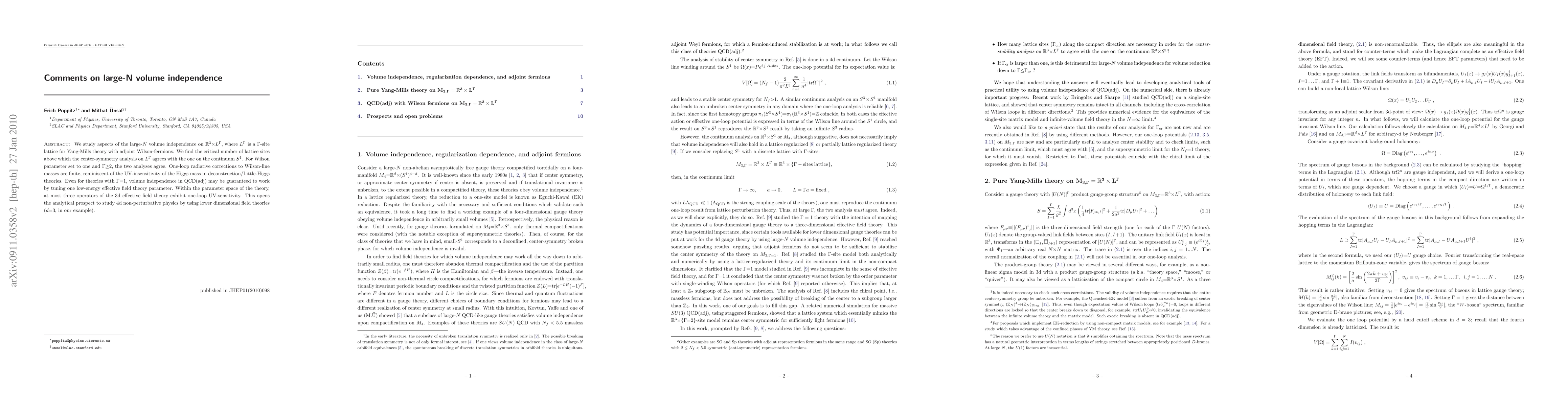 We study aspects of the large-N volume independence on R**3 x L**G, where L**G is a G-site lattice for Yang-Mills theory with adjoint Wilson-fermions. We find the critical number of lattice sites above which the center-symmetry analysis on L**G agrees with the one on the continuum S**1. For Wilson parameter set to one and G>=2, the two analyses agree. One-loop radiative corrections to Wilson-line masses are finite, reminiscent of the UV-insensitivity of the Higgs mass in deconstruction/Little-Higgs theories. Even for theories with G=1, volume independence in QCD(adj) may be guaranteed to work by tuning one low-energy effective field theory parameter. Within the parameter space of the theory, at most three operators of the 3d effective field theory exhibit one-loop UV-sensitivity. This opens the analytical prospect to study 4d non-perturbative physics by using lower dimensional field theories (d=3, in our example).