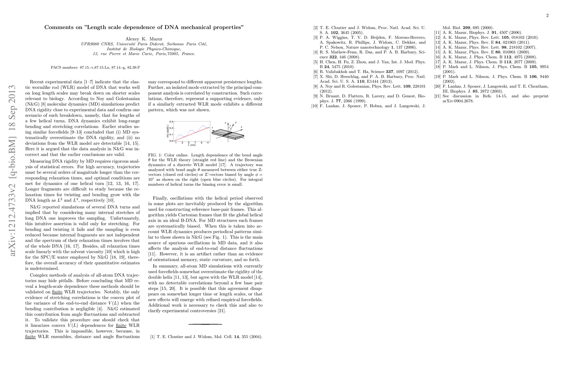Recent experimental data indicate that the elastic wormlike rod model of DNA that works well on long length scales may break down on shorter scales relevant to biology. According to Noy and Golestanian (Phys. Rev. Lett. 109, 228101, 2012) molecular dynamics (MD) simulations predict DNA rigidity close to experimental data and confirm one scenario of such breakdown, namely, that for lengths of a few helical turns, DNA dynamics exhibit long-range bending and stretching correlations. Earlier studies using similar forcefields concluded that (i) MD systematically overestimate the DNA rigidity, and (ii) no deviations from the WLR model are detectable. Here it is argued that the data analysis in the above mentioned paper was incorrect and that the earlier conclusions are valid.