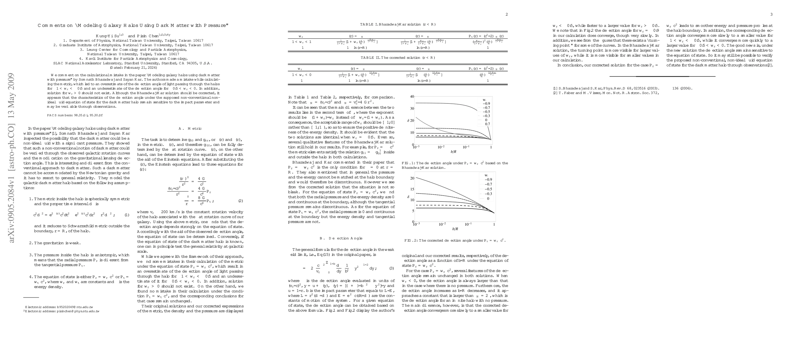 A research paper found an error in calculating the deflection angle of light passing through galaxy halos using dark matter with pressure, leading to incorrect predictions for certain ranges of impact parameters.