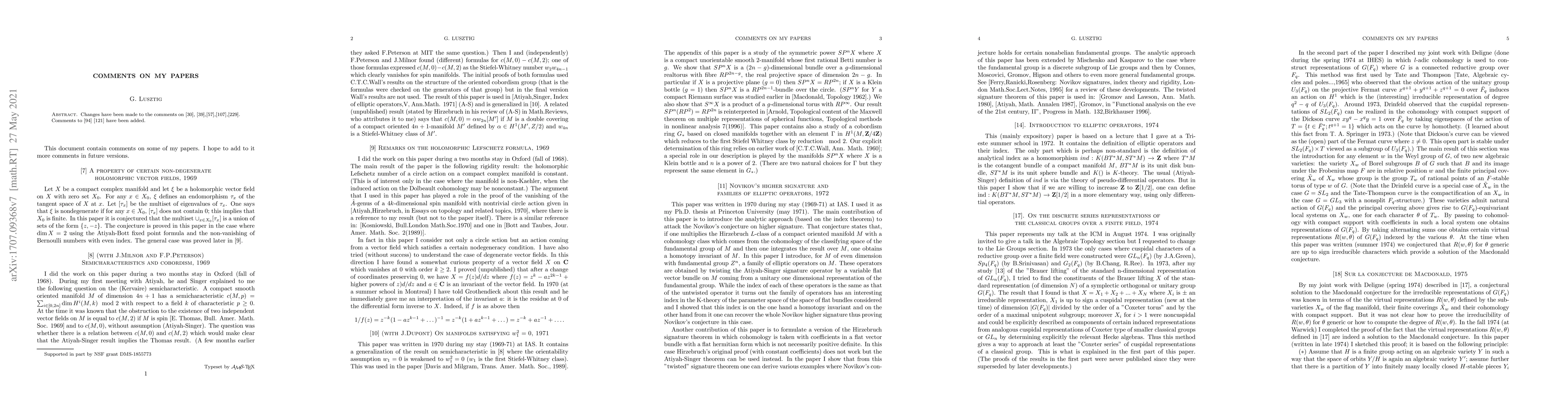 This document contains a description of several of my papers, including remarks on history and connection with subsequent work. It also contains some new results and conjectures.