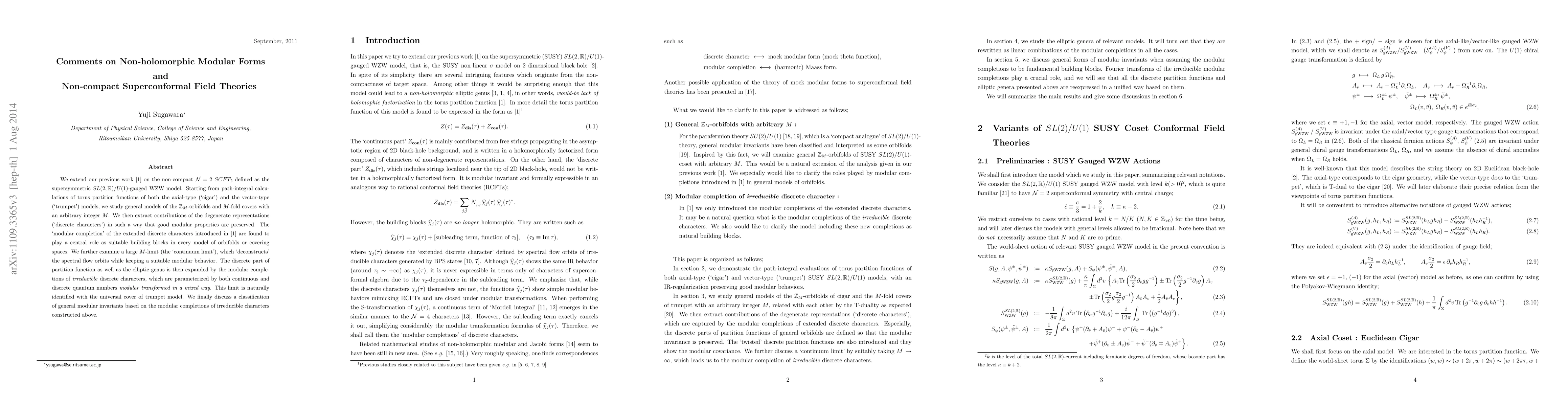 Researchers extend their work on supersymmetric string theories to study non-compact superconformal field theories, exploring modular properties of torus partition functions and elliptic genera in various models.