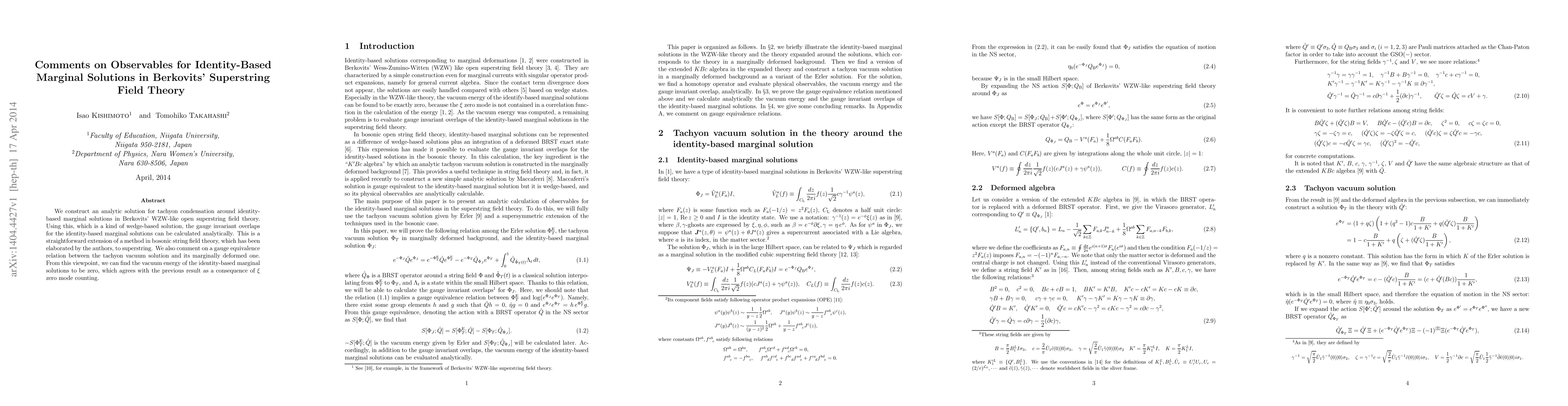 We construct an analytic solution for tachyon condensation around identity-based marginal solutions in Berkovits' WZW-like open superstring field theory. Using this, which is a kind of wedge-based solution, the gauge invariant overlaps for the identity-based marginal solutions can be calculated analytically. This is a straightforward extension of a method in bosonic string field theory, which has been elaborated by the authors, to superstring. We also comment on a gauge equivalence relation between the tachyon vacuum solution and its marginally deformed one. From this viewpoint, we can find the vacuum energy of the identity-based marginal solutions to be zero, which agrees with the previous result as a consequence of $\xi$ zero mode counting.