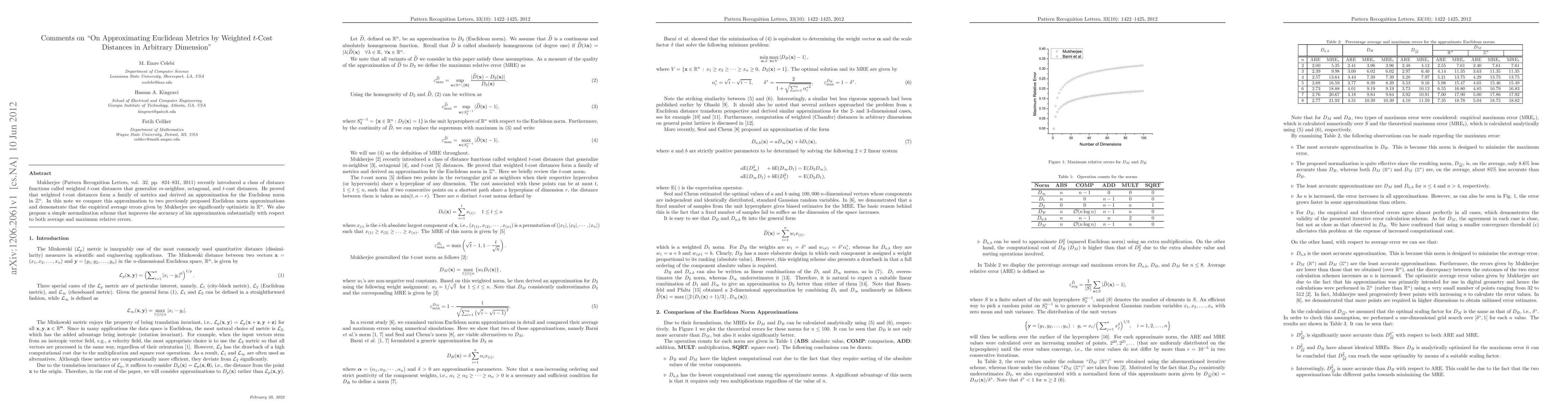 Mukherjee (Pattern Recognition Letters, vol. 32, pp. 824-831, 2011) recently introduced a class of distance functions called weighted t-cost distances that generalize m-neighbor, octagonal, and t-cost distances. He proved that weighted t-cost distances form a family of metrics and derived an approximation for the Euclidean norm in $\mathbb{Z}^n$. In this note we compare this approximation to two previously proposed Euclidean norm approximations and demonstrate that the empirical average errors given by Mukherjee are significantly optimistic in $\mathbb{R}^n$. We also propose a simple normalization scheme that improves the accuracy of his approximation substantially with respect to both average and maximum relative errors.