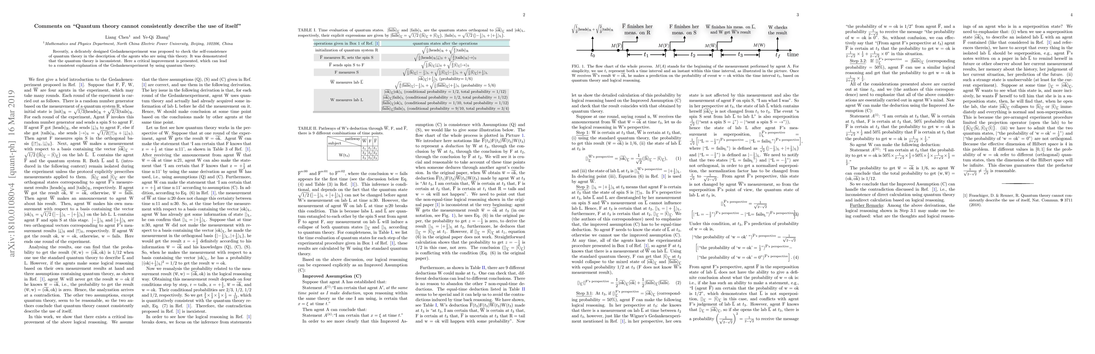 Recently, a delicately designed Gedankenexperiment was proposed to check the self-consistence of quantum theory in the description of the agents who are using this theory. It was demonstrated that the quantum theory is inconsistent. Here a critical improvement is presented, which can lead to a consistent explanation of the Gedankenexperiment by using quantum theory.