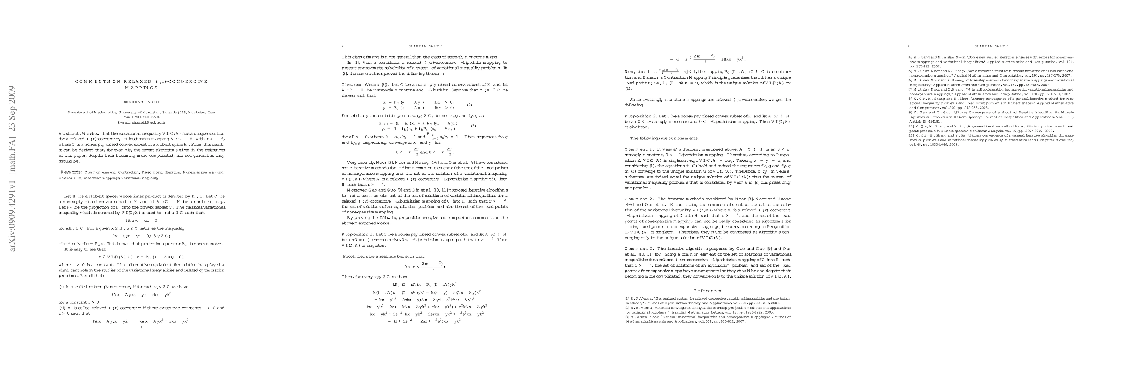 This paper demonstrates that a variational inequality $VI(C,A)$ has a unique solution for a relaxed $(\gamma, r)$-cocoercive, $\mu$-Lipschitzian mapping $A$ under certain conditions, and argues that recent algorithms, though complex, lack the necessary generality.