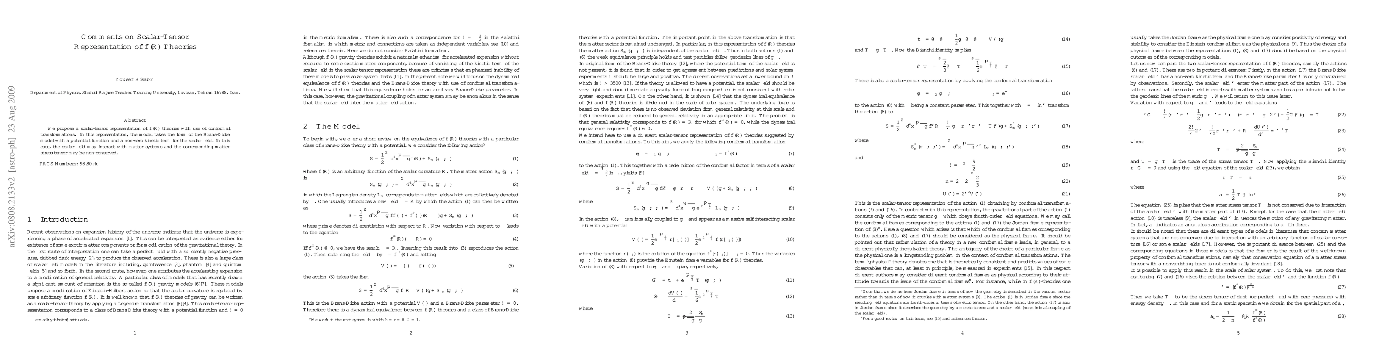 This paper proposes a scalar-tensor representation of $f(R)$ theories using conformal transformations, showing it resembles the Brans-Dicke model with a potential and non-zero kinetic term for the scalar field. It demonstrates that the scalar field's interaction with matter leads to a non-conserved matter stress tensor and anomalous acceleration of test particles.