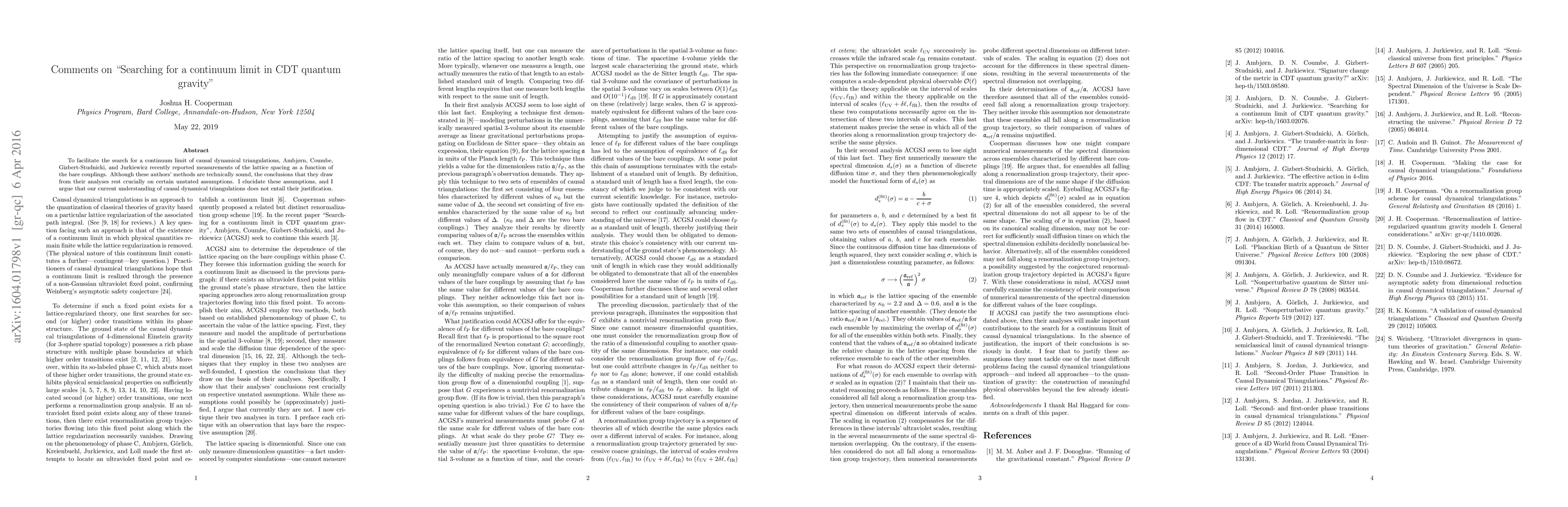 To facilitate the search for a continuum limit of causal dynamical triangulations, Ambjorn, Coumbe, Gizbert-Studnicki, and Jurkiewicz recently reported measurements of the lattice spacing as a function of the bare couplings. Although these authors' methods are technically sound, the conclusions that they draw from their analyses rest crucially on certain unstated assumptions. I elucidate these assumptions, and I argue that our current understanding of causal dynamical triangulations does not entail their justification.