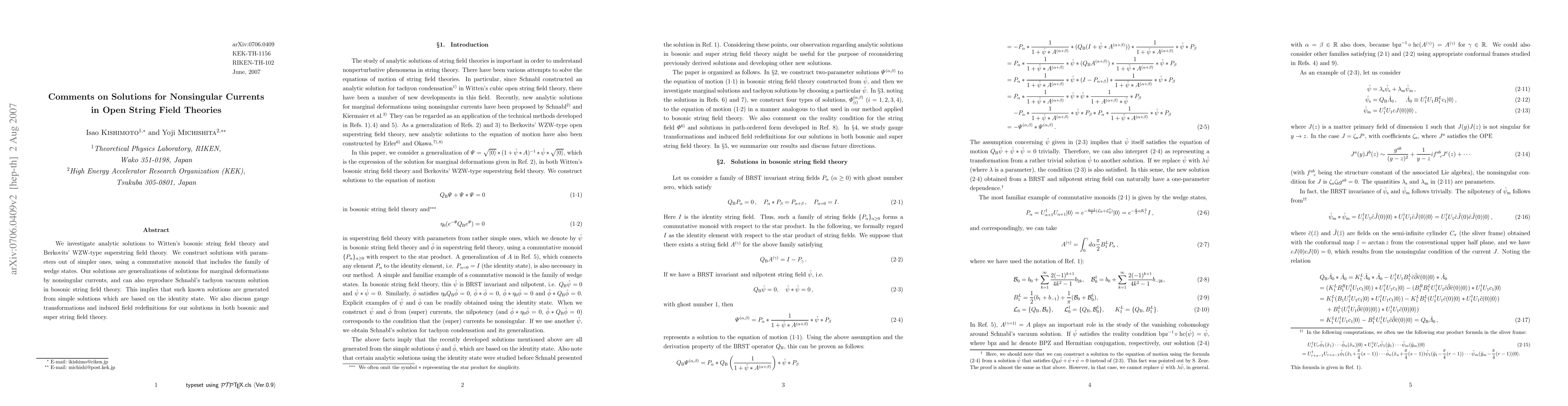 We investigate analytic solutions to Witten's bosonic string field theory and Berkovits' WZW-type superstring field theory. We construct solutions with parameters out of simpler ones, using a commutative monoid that includes the family of wedge states. Our solutions are generalizations of solutions for marginal deformations by nonsingular currents, and can also reproduce Schnabl's tachyon vacuum solution in bosonic string field theory. This implies that such known solutions are generated from simple solutions which are based on the identity state. We also discuss gauge transformations and induced field redefinitions for our solutions in both bosonic and super string field theory.