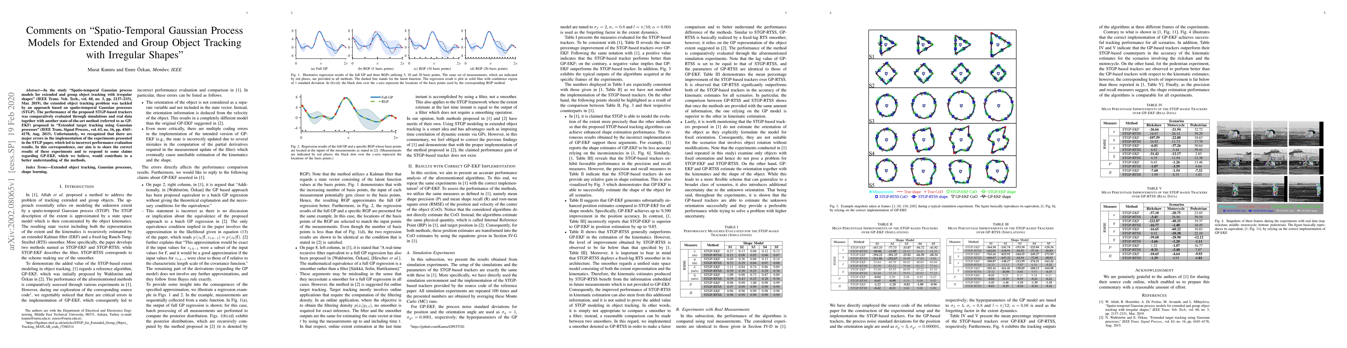 Researchers re-evaluate the performance of a spatio-temporal Gaussian process model for object tracking with irregular shapes, correcting errors in previous implementation results.