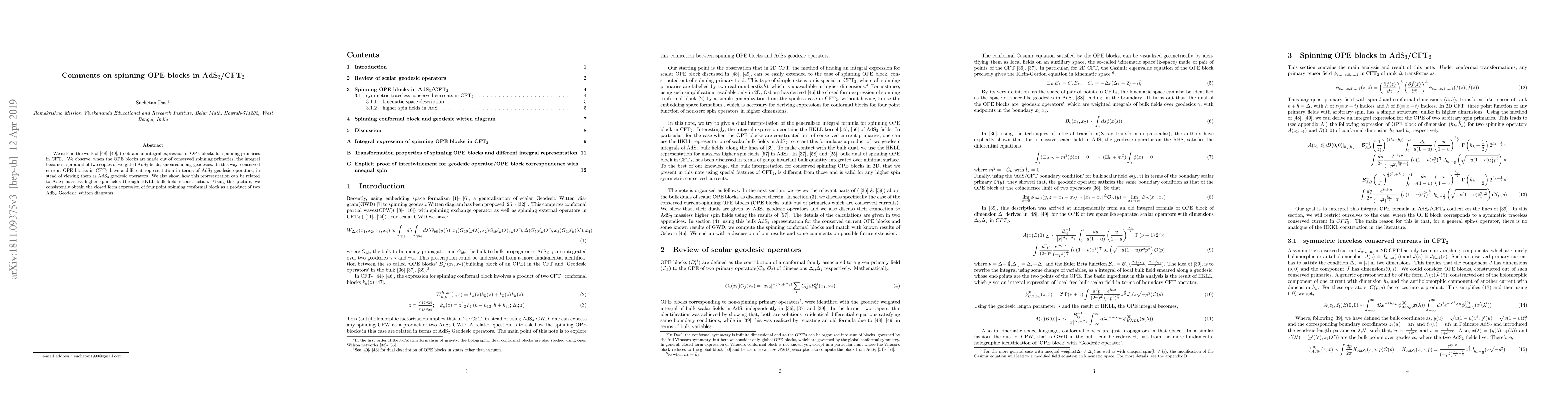 This paper extends previous work to derive an integral expression for OPE blocks involving spinning primaries in CFT$_2$, revealing that these blocks can be represented as products of weighted AdS$_2$ fields smeared along geodesics instead of AdS$_3$ geodesic operators. The authors also demonstrate a connection to AdS$_3$ massless higher spin fields via HKLL reconstruction and provide a closed form for the four-point spinning conformal block.