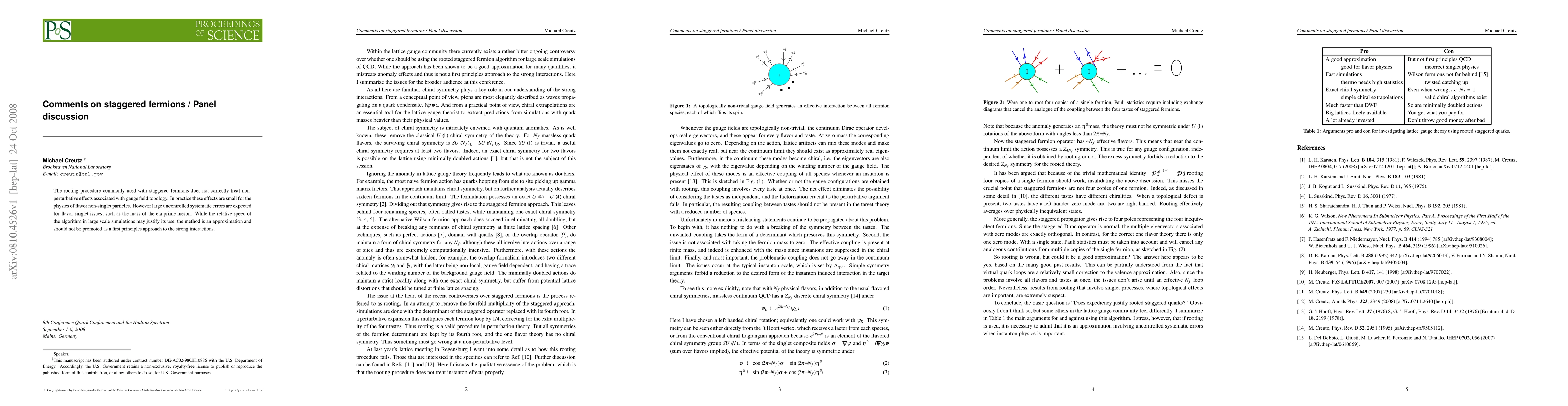 The rooting procedure commonly used with staggered fermions does not correctly treat non-perturbative effects associated with gauge field topology. In practice these effects are small for the physics of flavor non-singlet particles. However large uncontrolled systematic errors are expected for flavor singlet issues, such as the mass of the eta prime meson. While the relative speed of the algorithm in large scale simulations may justify its use, the method is an approximation and should not be promoted as a first principles approach to the strong interactions.