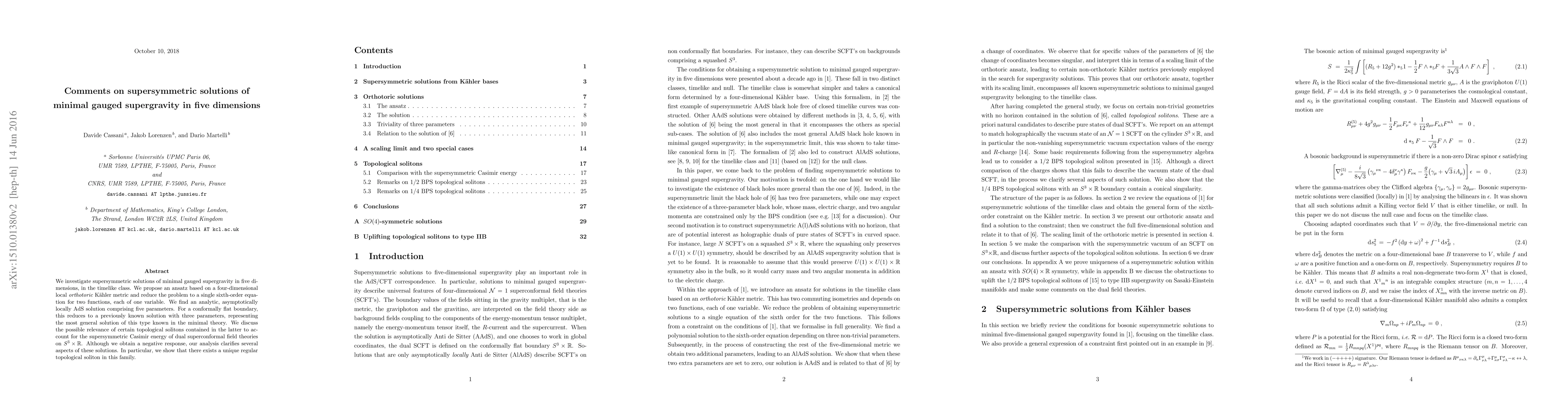 This paper investigates supersymmetric solutions in five-dimensional minimal gauged supergravity, deriving a sixth-order equation for two functions. It finds an analytic asymptotically locally AdS solution with five parameters, which reduces to a previously known solution with three parameters for conformally flat boundaries. The analysis reveals a unique regular topological soliton relevant to supersymmetric Casimir energy.