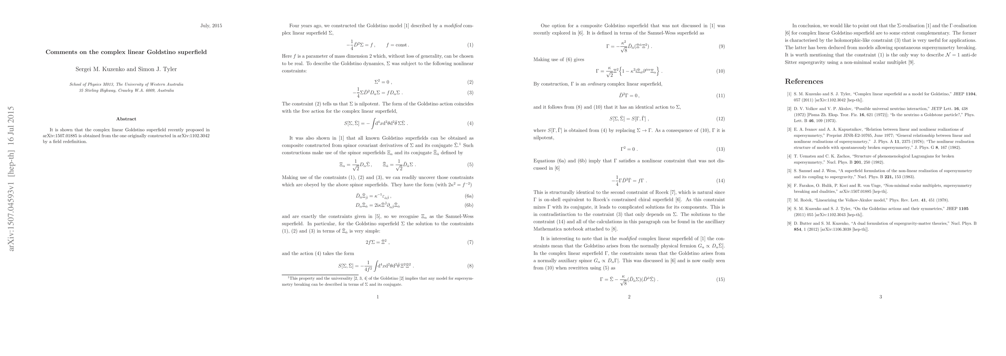 Summary: The paper demonstrates that the recently proposed complex linear Goldstino superfield can be derived from an earlier construction through a field redefinition, linking developments in superfield theories.