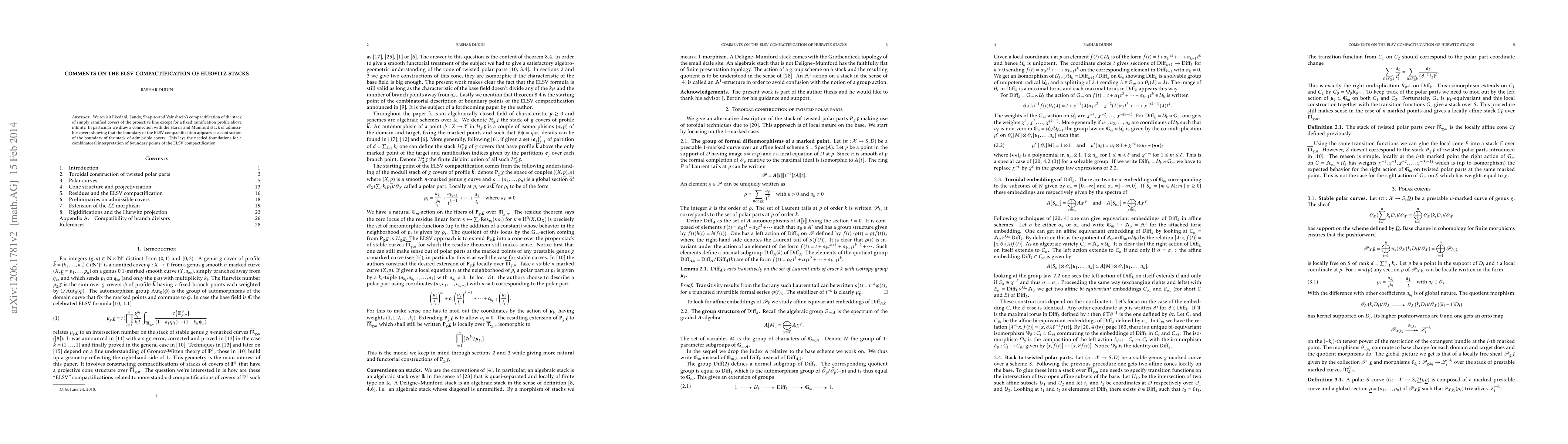 We revisit Ekedahl, Lando, Shapiro and Vainshtein's compactification of the stack of simply ramified covers of the projective line except for a fixed ramification profile above infinity. In particular we draw a connection with the Harris and Mumford stack of admissible covers showing that the boundary of the ELSV compactification appears as a contraction of the boundary of the stack of admissible covers. This lays the needed foundations for a combinatoral interpretation of boundary points of the ELSV compactification