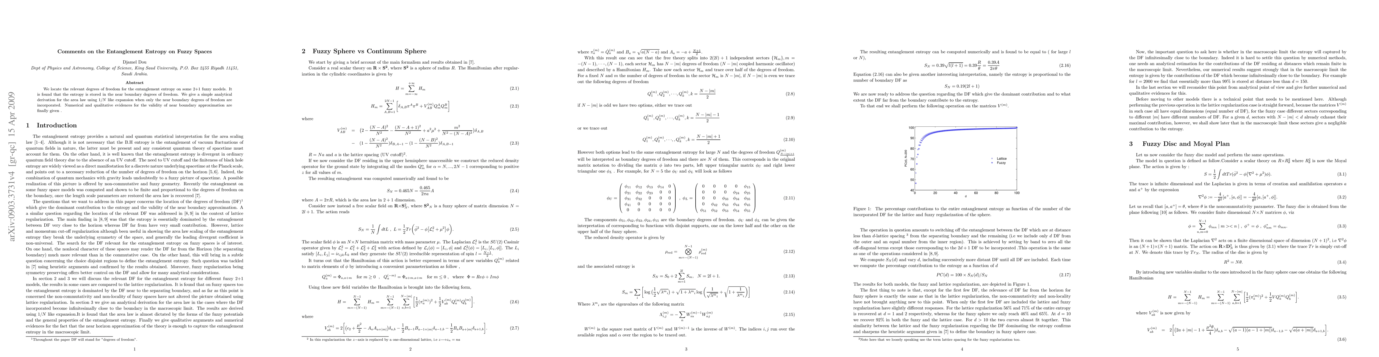 We locate the relevant degrees of freedom for the entanglement entropy on some 2+1 fuzzy models. It is found that the entropy is stored in the near boundary degrees of freedom. We give a simple analytical derivation for the area law using $1/N$ like expansion when only the near boundary degrees of freedom are incorporated. Numerical and qualitative evidences for the validity of near boundary approximation are finally given .