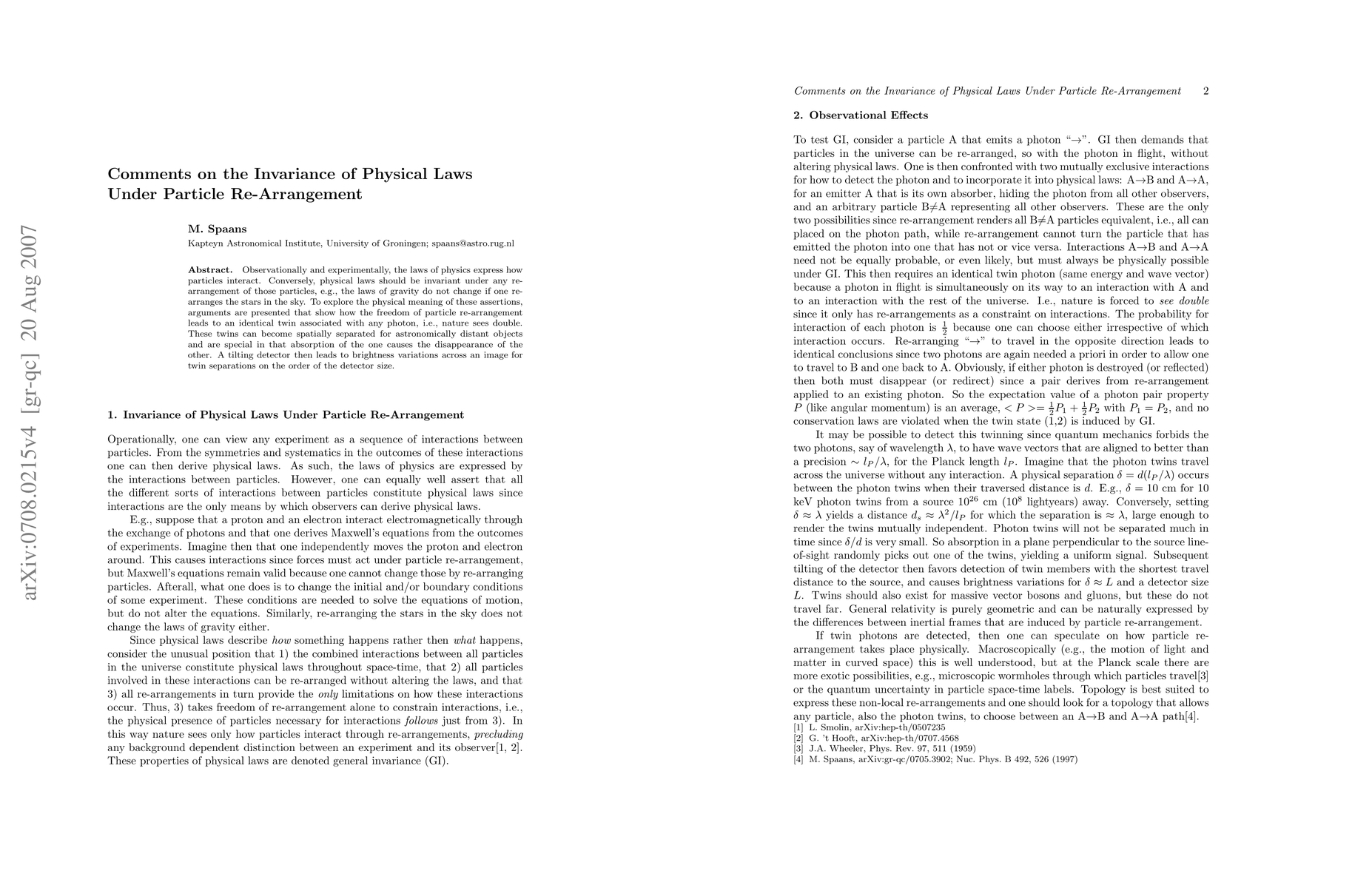 Research finds that physical laws remain invariant under particle re-arrangement, leading to a concept of 'twin' photons that can become spatially separated and detect one's disappearance.