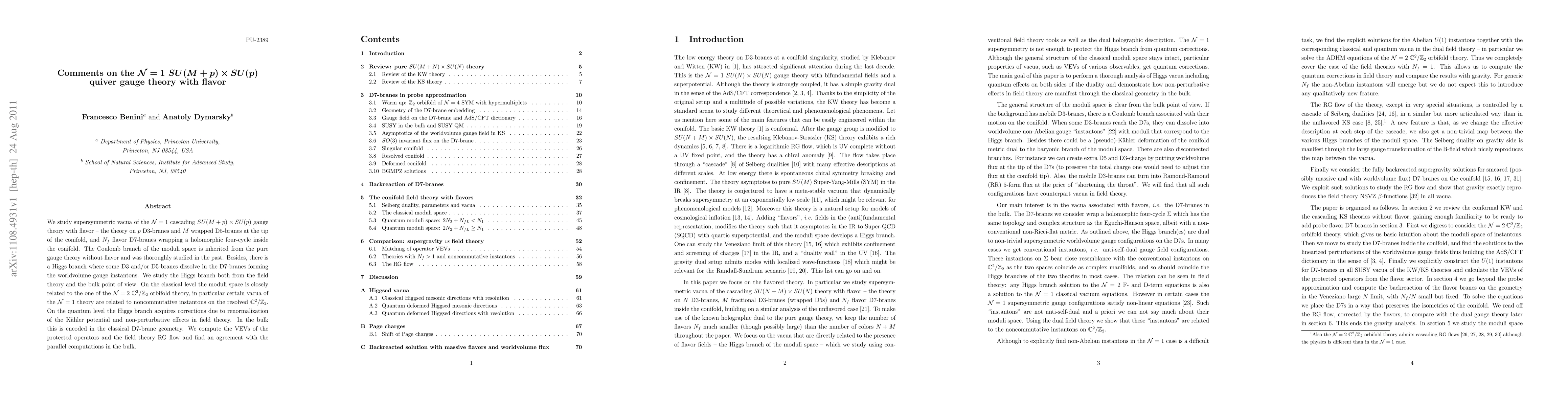 Researchers studied supersymmetric vacua of a gauge theory with flavor in string theory, finding agreements between field theory and bulk computations, including VEVs of protected operators and RG flow.