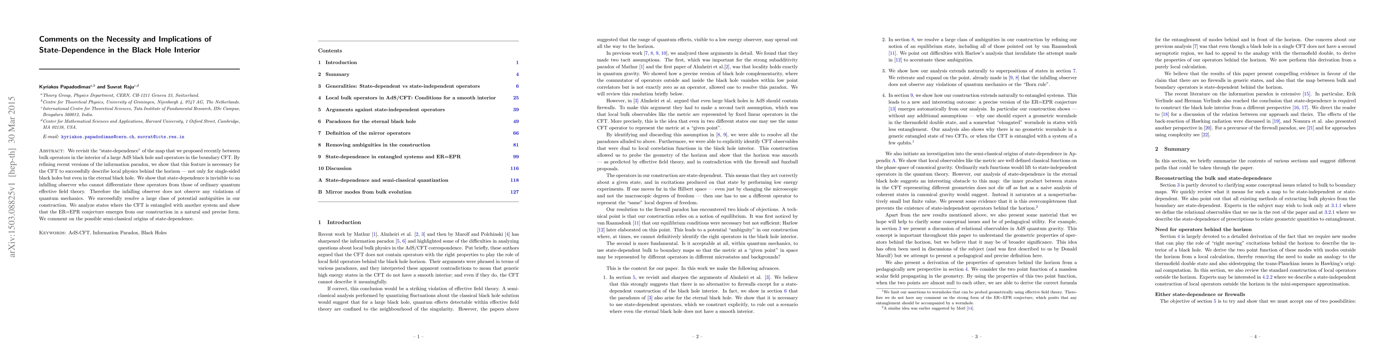 We revisit the "state-dependence" of the map that we proposed recently between bulk operators in the interior of a large AdS black hole and operators in the boundary CFT. By refining recent versions of the information paradox, we show that this feature is necessary for the CFT to successfully describe local physics behind the horizon --- not only for single-sided black holes but even in the eternal black hole. We show that state-dependence is invisible to an infalling observer who cannot differentiate these operators from those of ordinary quantum effective field theory. Therefore the infalling observer does not observe any violations of quantum mechanics. We successfully resolve a large class of potential ambiguities in our construction. We analyze states where the CFT is entangled with another system and show that the ER=EPR conjecture emerges from our construction in a natural and precise form. We comment on the possible semi-classical origins of state-dependence.