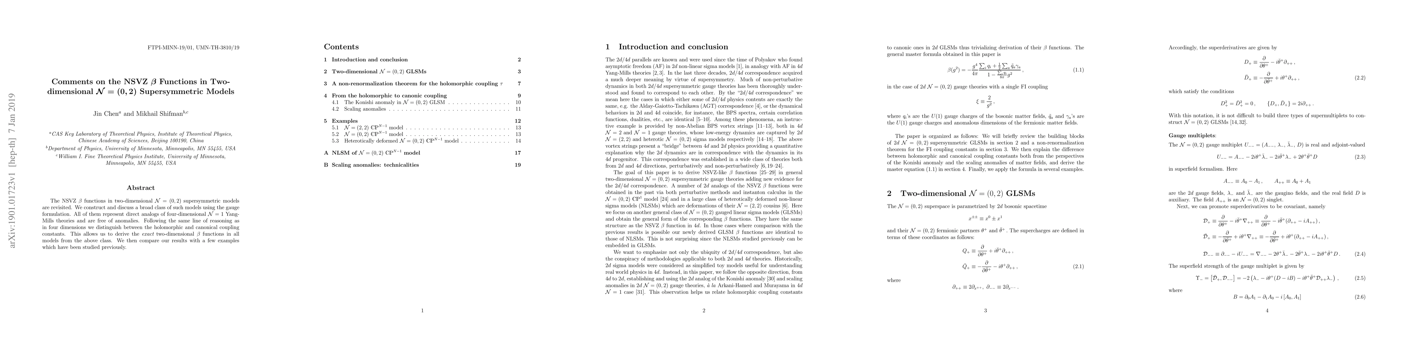 The paper revisits NSVZ $\beta$ functions in two-dimensional $\mathcal N=(0,2)$ supersymmetric models, constructing a broad class of these models using gauge formulation and deriving exact $\beta$ functions by distinguishing holomorphic and canonical coupling constants. The results are compared with previously studied examples.