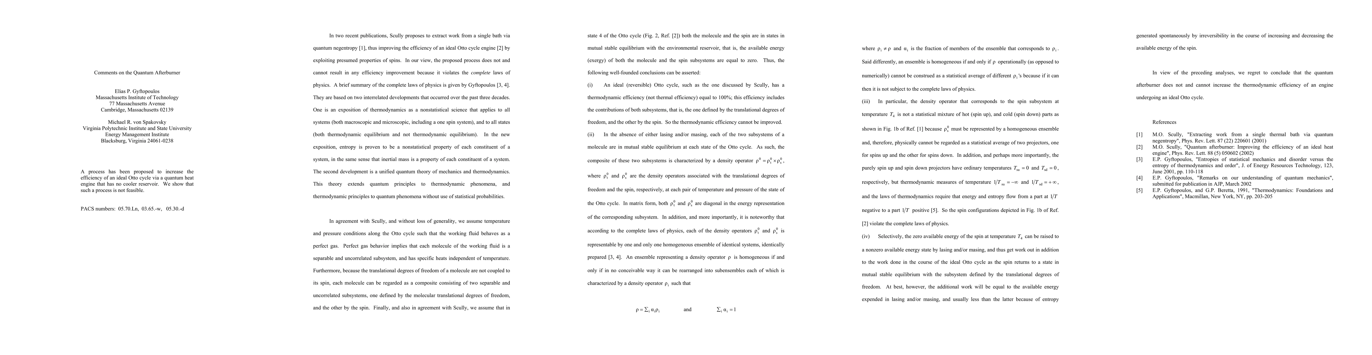 A process has been proposed to increase the efficiency of an ideal Otto cycle via a quantum heat engine that has no cooler reservoir. We show that such a process is not feasible.