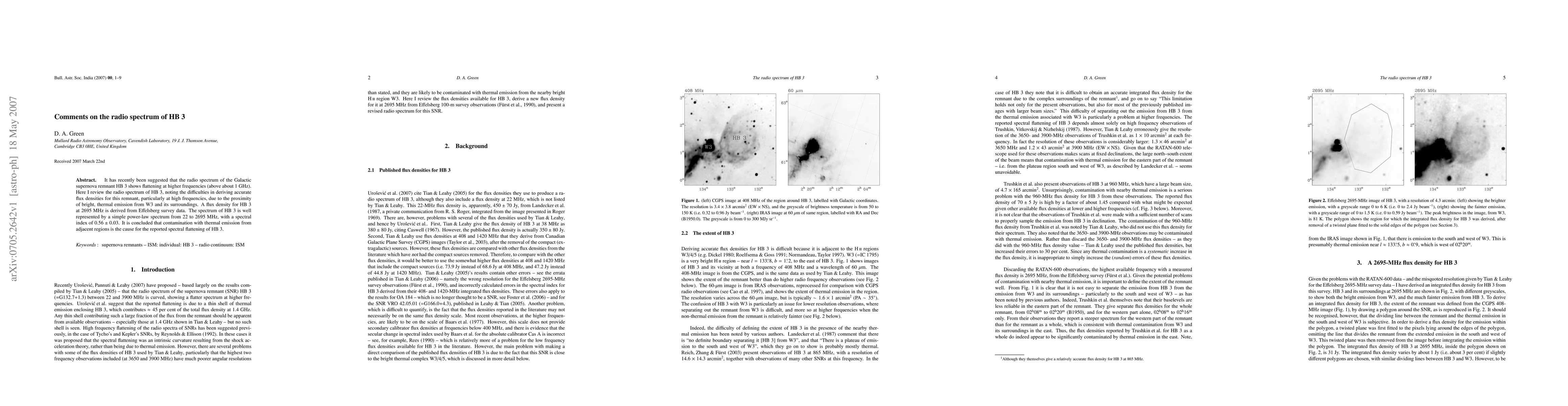 It has recently been suggested that the radio spectrum of the Galactic supernova remnant HB 3 shows flattening at higher frequencies (above about 1 GHz). Here I review the radio spectrum of HB 3, noting the difficulties in deriving accurate flux densities for this remnant, particularly at high frequencies, due to the proximity of bright, thermal emission from W3 and its surroundings. A flux density for HB 3 at 2695 MHz is derived from Effelsberg survey data. The spectrum of HB 3 is well represented by a simple power-law spectrum from 22 to 2695 MHz, with a spectral index of 0.56 +/- 0.03. It is concluded that contamination with thermal emission from adjacent regions is the cause for the reported spectral flattening of HB 3.