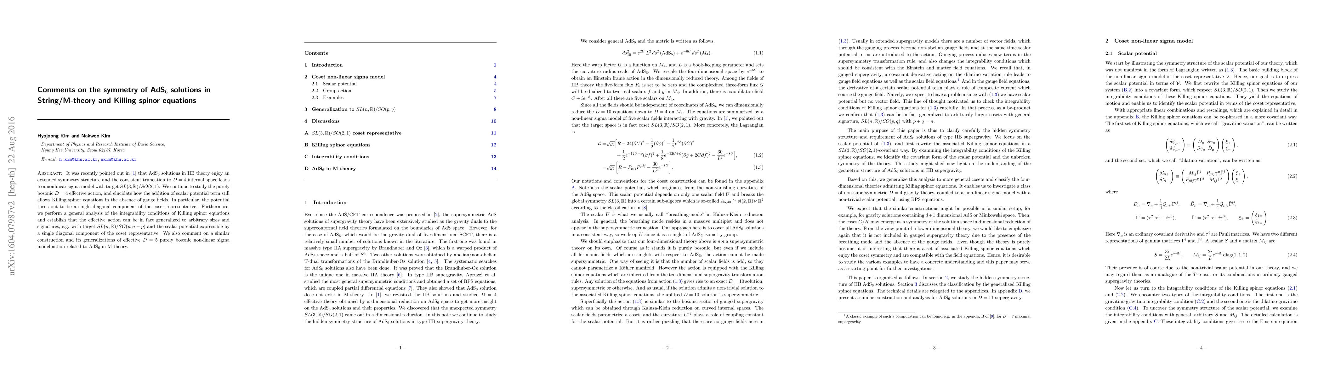 It was recently pointed out in \cite{Kim:2015hya} that AdS$_6$ solutions in IIB theory enjoy an extended symmetry structure and the consistent truncation to $D=4$ internal space leads to a nonlinear sigma model with target $SL(3,\mathbb{R})/SO(2,1)$. We continue to study the purely bosonic $D=4$ effective action, and elucidate how the addition of scalar potential term still allows Killing spinor equations in the absence of gauge fields. In particular, the potential turns out to be a single diagonal component of the coset representative. Furthermore, we perform a general analysis of the integrability conditions of Killing spinor equations and establish that the effective action can be in fact generalized to arbitrary sizes and signatures, e.g. with target $SL(n,\mathbb{R})/SO(p,n-p)$ and the scalar potential expressible by a single diagonal component of the coset representative. We also comment on a similar construction and its generalizations of effective $D=5$ purely bosonic non-linear sigma model action related to AdS$_6$ in M-theory.