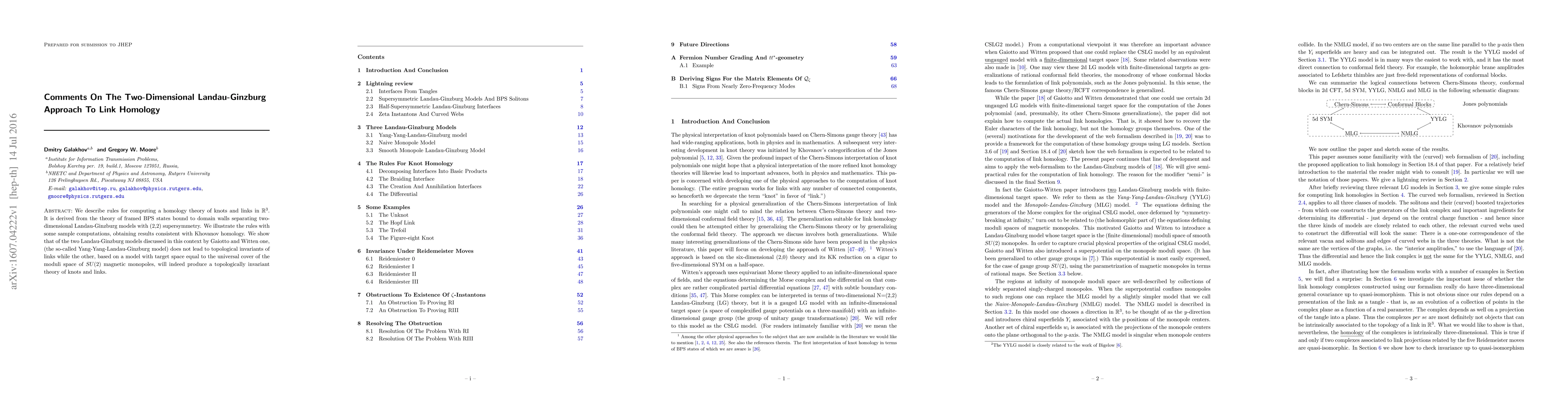 We describe rules for computing a homology theory of knots and links in $\mathbb{R}^3$. It is derived from the theory of framed BPS states bound to domain walls separating two-dimensional Landau-Ginzburg models with (2,2) supersymmetry. We illustrate the rules with some sample computations, obtaining results consistent with Khovanov homology. We show that of the two Landau-Ginzburg models discussed in this context by Gaiotto and Witten one, (the so-called Yang-Yang-Landau-Ginzburg model) does not lead to topological invariants of links while the other, based on a model with target space equal to the universal cover of the moduli space of $SU(2)$ magnetic monopoles, will indeed produce a topologically invariant theory of knots and links.