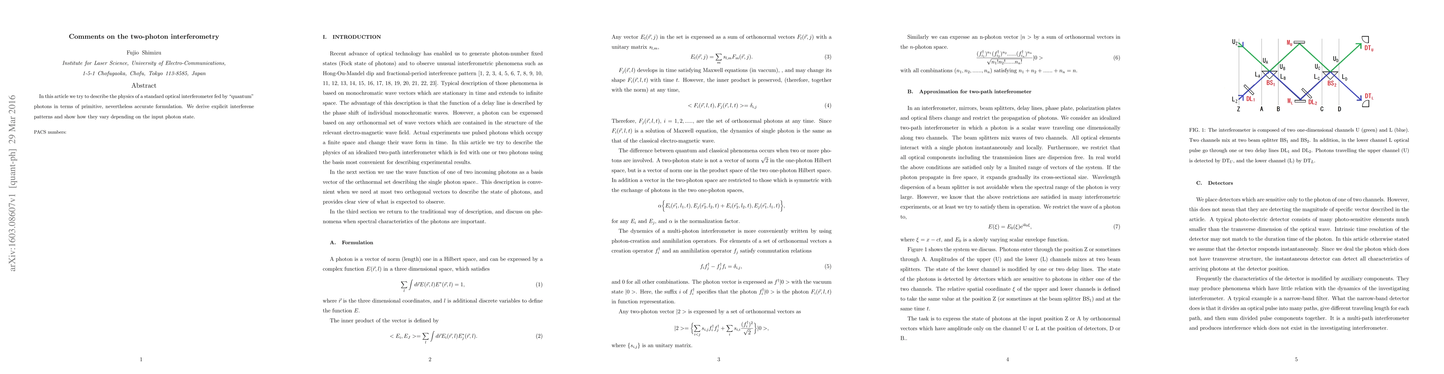Researchers describe how a quantum photon interferometer works using simple physics formulas, revealing patterns that depend on the input photon state.