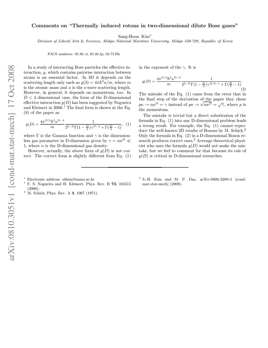 A mistake of the effective interaction between D-dimensional Bose atoms [arXiv:cond-mat/0503523] that was published by Physical Review B in 2006 is corrected.