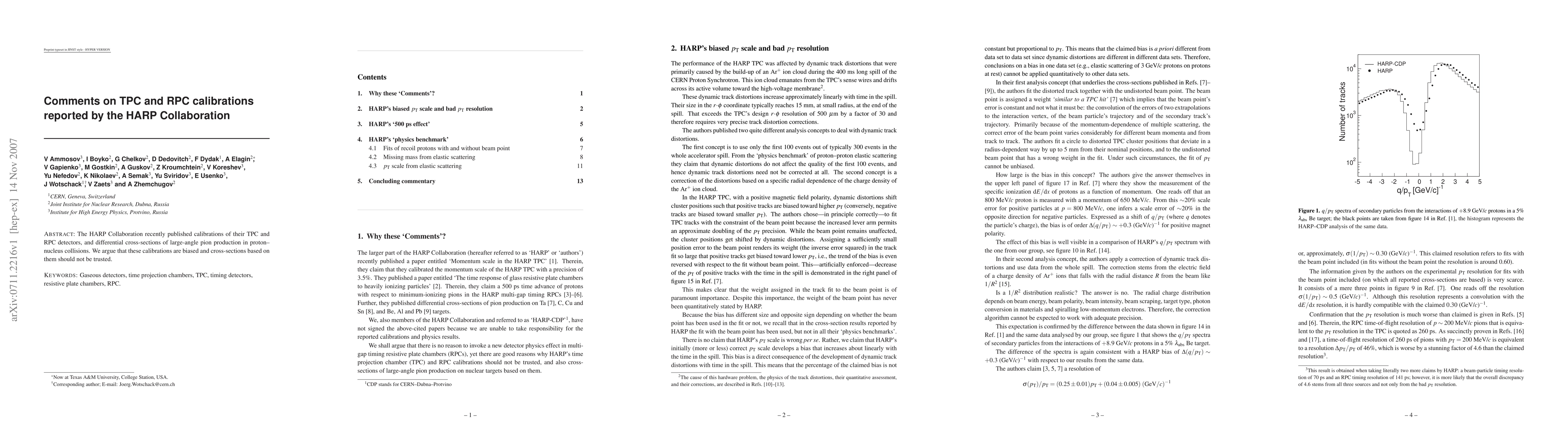 The HARP Collaboration recently published calibrations of their TPC and RPC detectors, and differential cross-sections of large-angle pion production in proton-nucleus collisions. We argue that these calibrations are biased and cross-sections based on them should not be trusted.