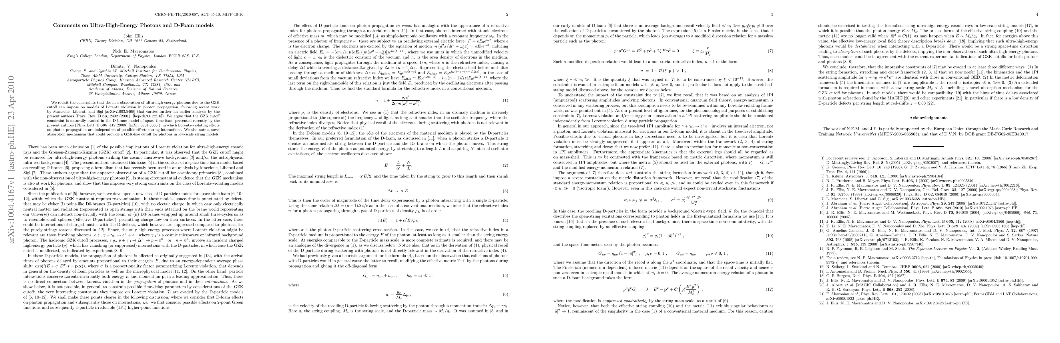 We revisit the constraints that the non-observation of ultra-high-energy photons due to the GZK cutoff can impose on models of Lorentz violation in photon propagation, following recent work by Maccione, Liberati and Sigl [arXiv:1003.5468] that carries further an earlier analysis by the present authors (Phys. Rev. D 63,12402 (2001), [hep-th/0012216]). We argue that the GZK cutoff constraint is naturally evaded in the D-brane model of space-time foam presented recently by the present authors (Phys. Lett. B 665, 412 (2008) [arXiv:0804.3566]), in which Lorentz-violating effects on photon propagation are independent of possible effects during interactions. We also note a novel absorption mechanism that could provide a GZK-like cutoff for photons in low-scale string models.