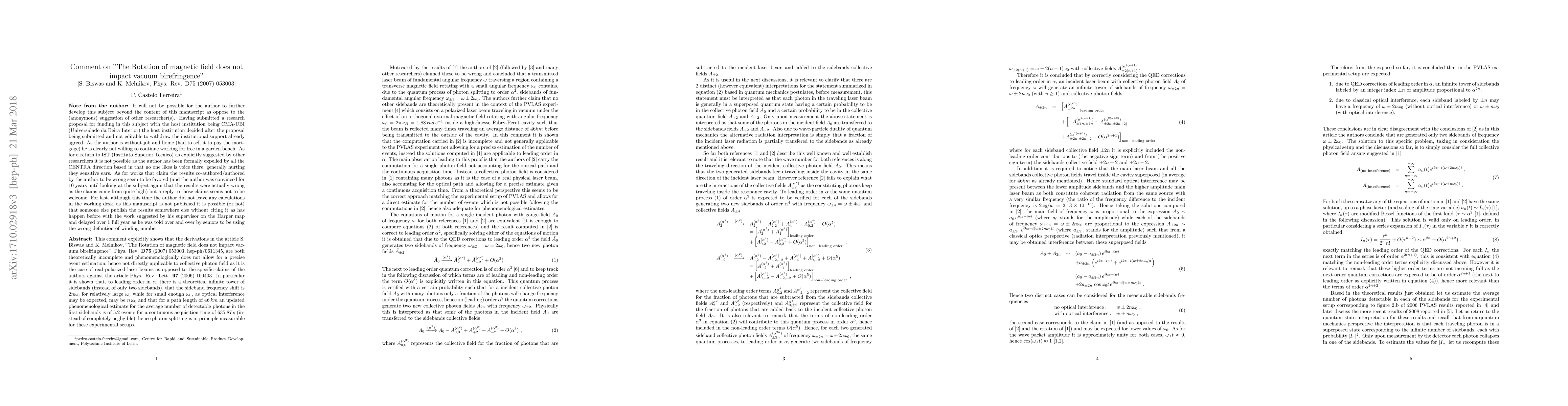 Compilation of 2 comments on S. L. Adler, "Vacuum Birefringence in a Rotating Magnetic Field", J.Phys. A40 (2007) F143-F152, hep-ph/0611267 and S. Biswas and K. Melnikov, "The Rotation of magnetic field does not impact vacuum birefringence", Phys. Rev. D75 (2007) 053003, hep-ph/0611345, hope it has some usefulness.