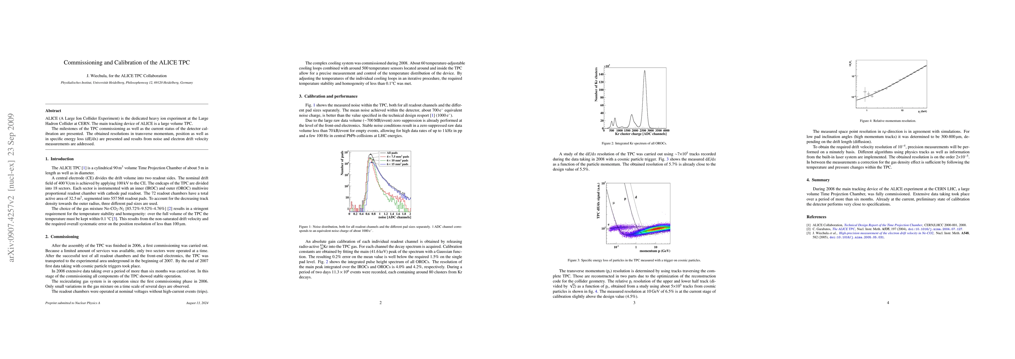 This paper details the commissioning and calibration of the ALICE Time Projection Chamber (TPC), a key tracking device in ALICE experiments at CERN. It reports on the detector's performance in terms of transverse momentum, position, and energy loss resolution, alongside noise and electron drift velocity measurements.
