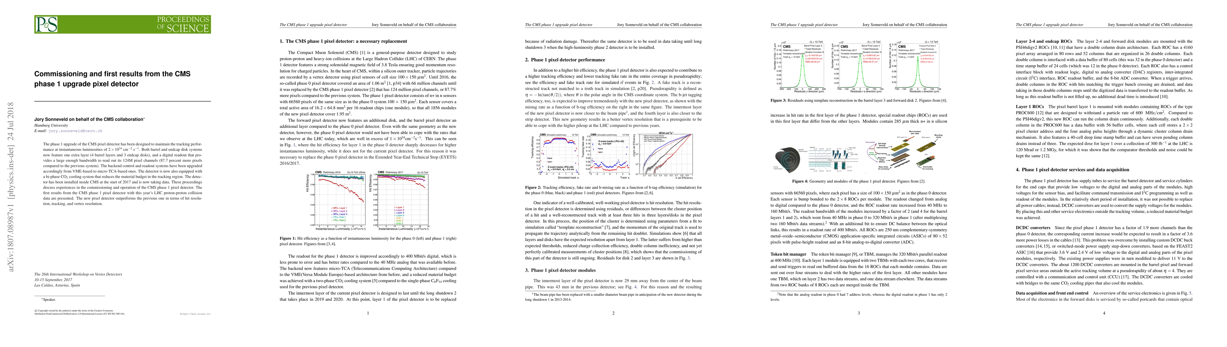 The CMS phase 1 upgrade pixel detector, featuring an additional layer and digital readout, has been commissioned and is now operational within the CMS detector. Initial results show significant improvements in hit resolution, tracking, and vertex resolution compared to the previous detector.