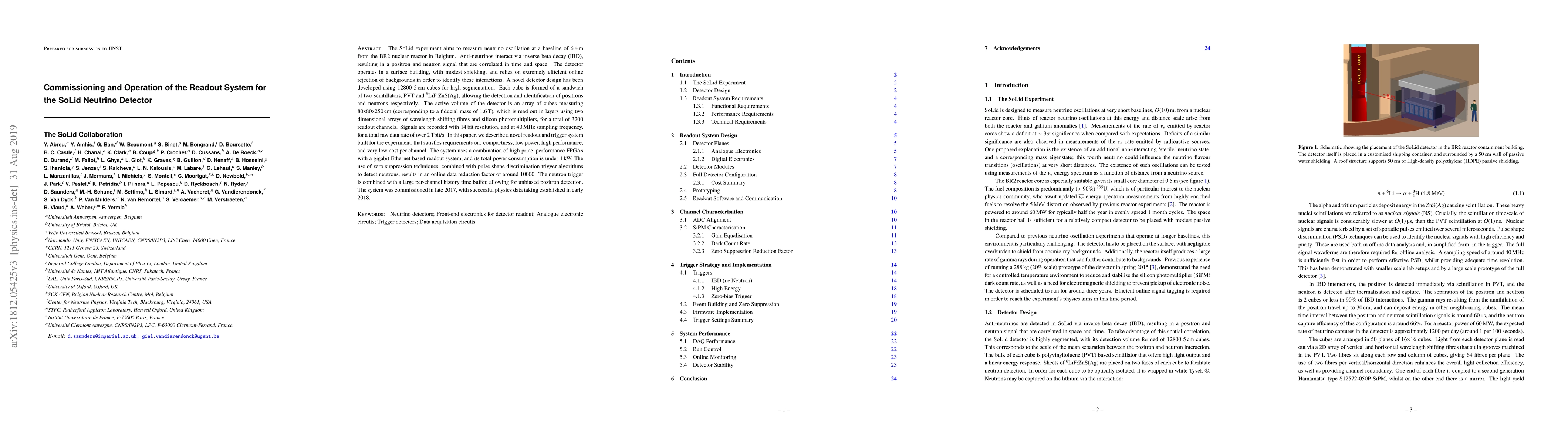 This paper details the commissioning and operation of the readout system for the SoLid neutrino detector, which uses a segmented array of scintillator cubes to detect anti-neutrinos via inverse beta decay. The system combines FPGAs and gigabit Ethernet for efficient data handling, achieving a data reduction factor of around 10,000 and successful physics data collection since early 2018.
